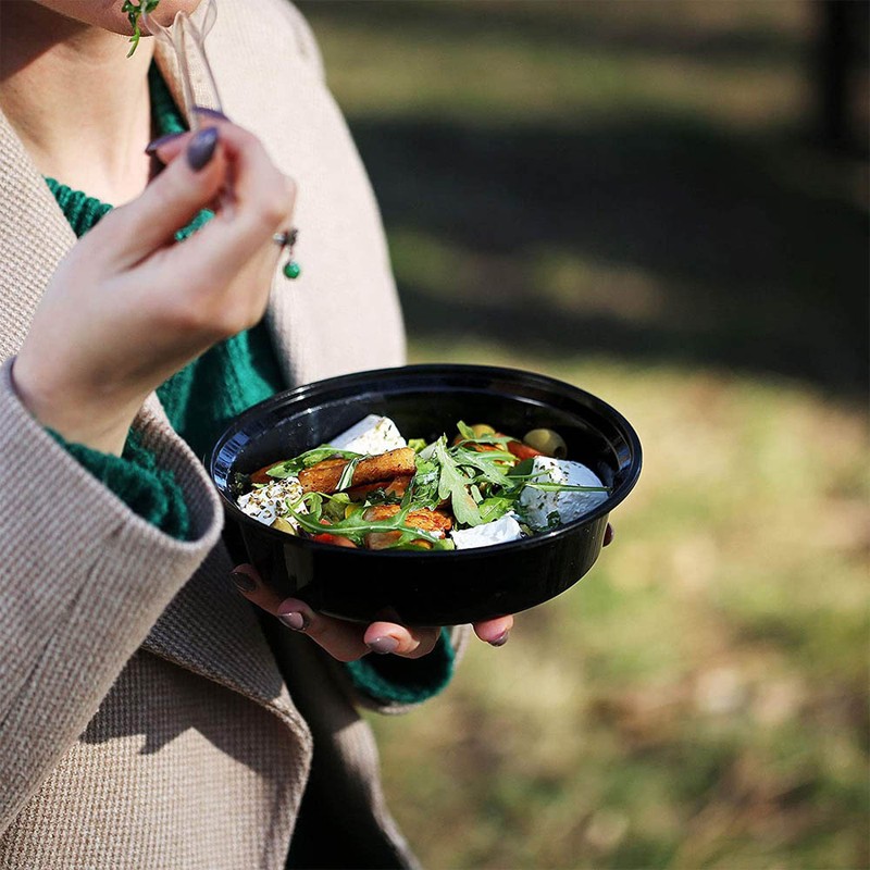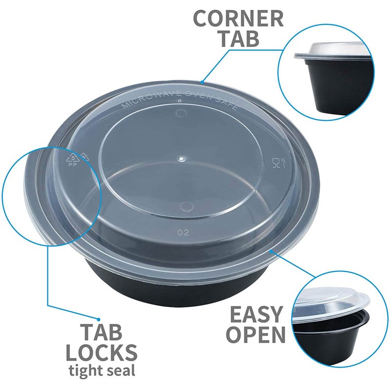 Color: fondo negro y cubierta blanca Material: PP puro Tamaño: 7,3*25 pulgadas Temperatura aplicable: 100C / 212F grados Capacidad: 700 ml (24oz) Forma: redonda Características: fresco, evita que la comida tenga influencia externa Cantidad: 10 Uds.