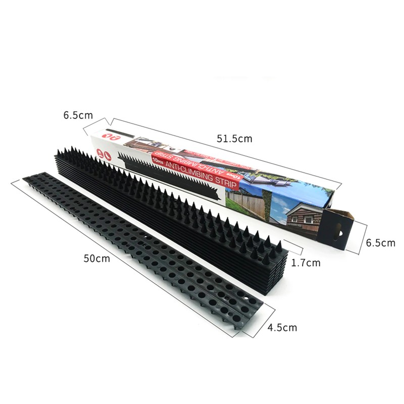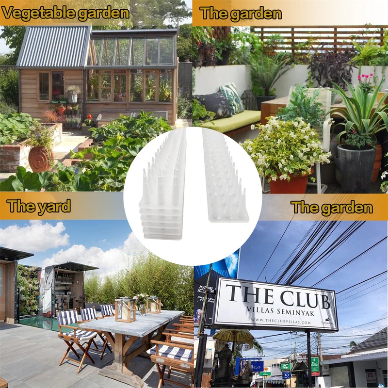 Instale en cualquier lugar: tiras de plástico simples para instalarlas sobre cualquier superficie plana (vallas, puertas, cobertizos, barandillas, repisas, paredes fronterizas). Los picos antitrepadores detienen a intrusos y gatos, mapones, pájaros y más.