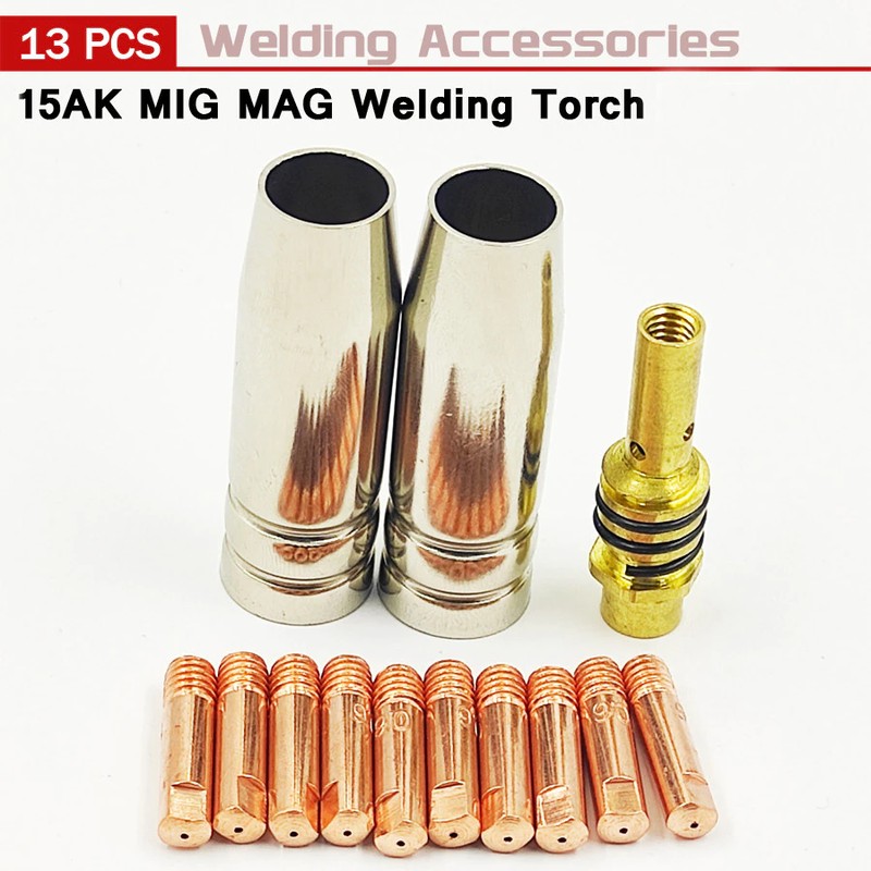 13 piezas 14AK consumibles de antorcha de soldadura 0,6mm 0,8mm 0,9mm 1,0mm 1,2mm MIG antorcha Gas boquilla soporte de punta de 15AK MIG MAG antorcha de soldadura
