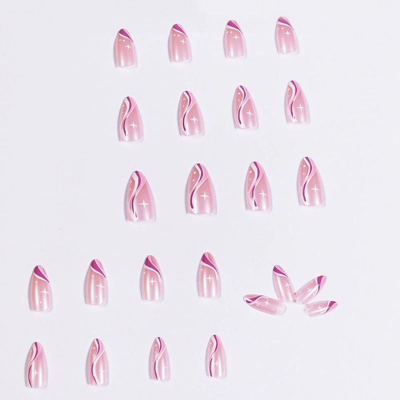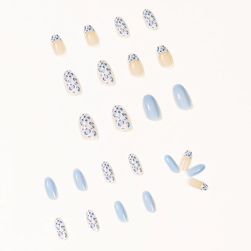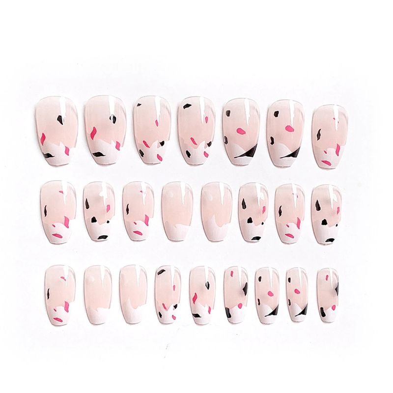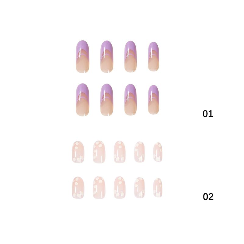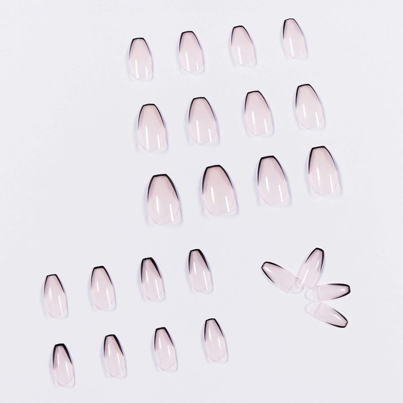 El paquete incluye: 24 unids/bolsa puntas de uñas postizas + 1 pegamento de presión