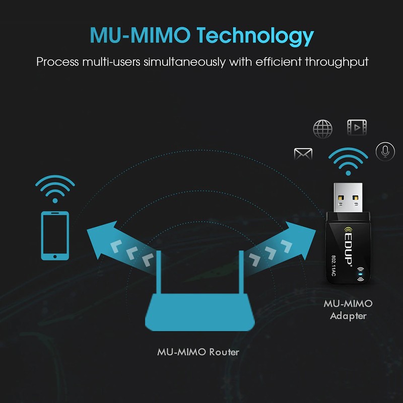 Edup-Mini Adaptador Wifi De 300M-1300 Mbps, Adaptador Inalámbrico Ca Usb, Con Tarjeta De Red De Doble Banda 5G/2 4 Ghz Para Pc, Escritorio Y Portátil