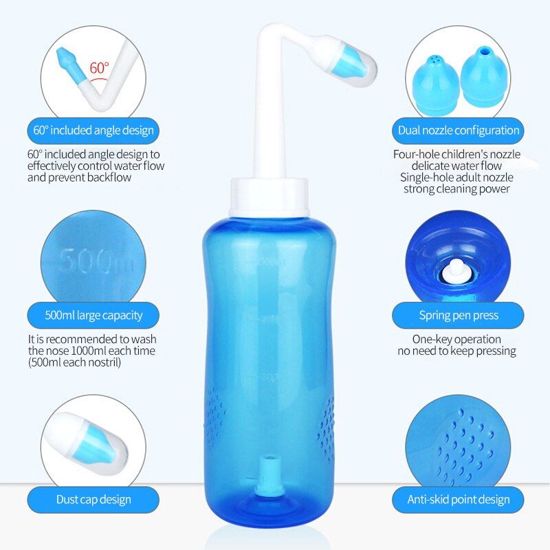 Protector Nasal De 300Ml Para Adultos Y Niños, Limpiador Nasal Hidratante, Olla Neti 500Ml Desintoxicación De Senos Nasales, Alivio De Alergias