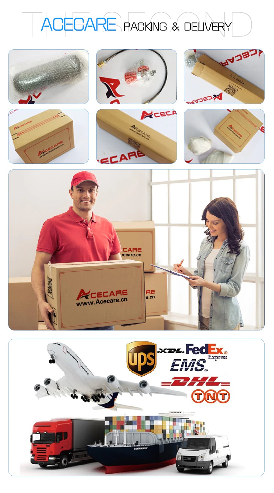 Tanque de aire Acecare 3L/6.8L/9L CE 4500Psi cilindro PCP de fibra de carbono Scuba Hpa