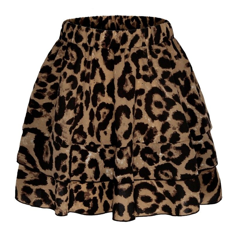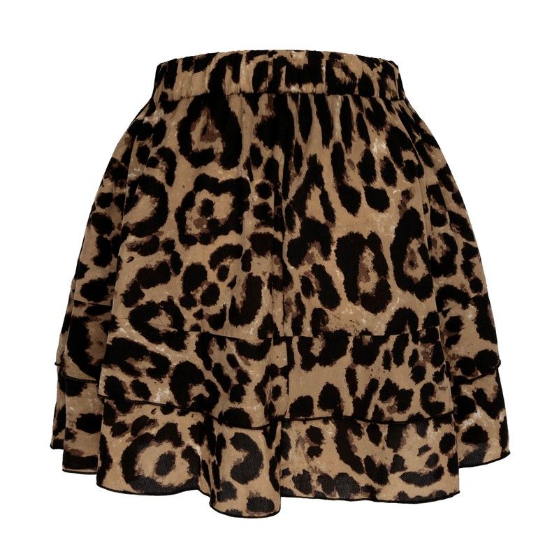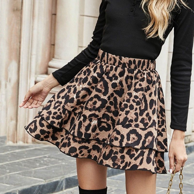 Mini falda drapeada corta de cintura alta con volantes Vintage y estampado de leopardo para mujer a la moda