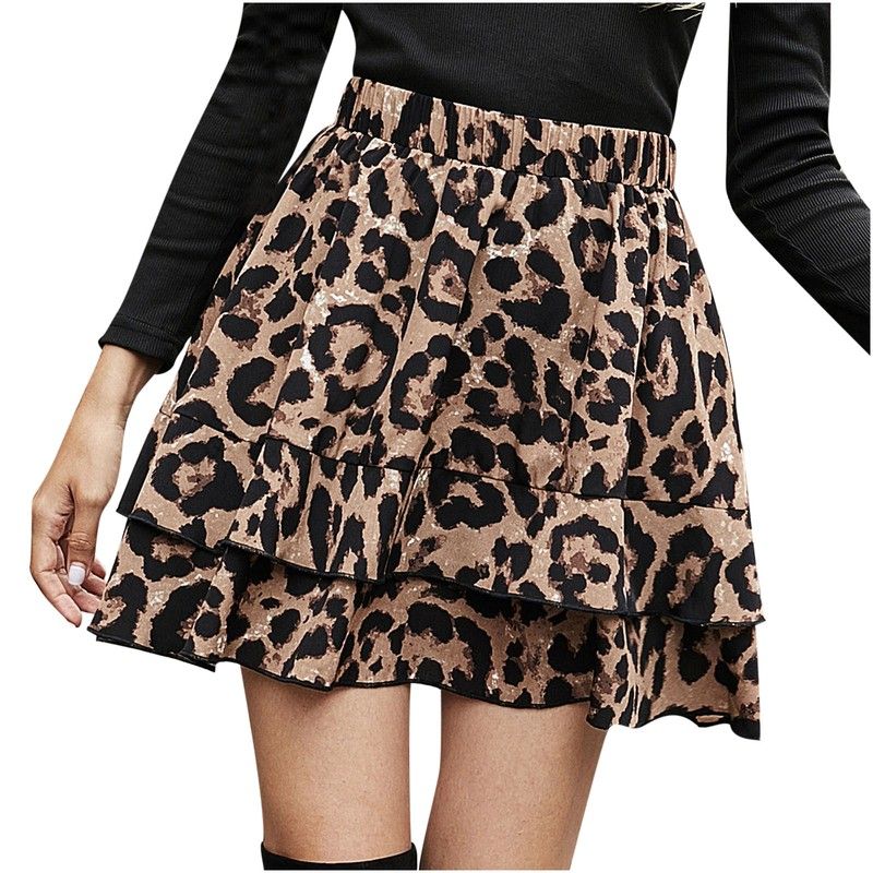 Faldas Con Estampado De Leopardo Para Mujer, Minifalda Vintage Drapeada Con Volantes, Cintura Alta Banda Elástica Estilo Retro Para Ocio, 40 #