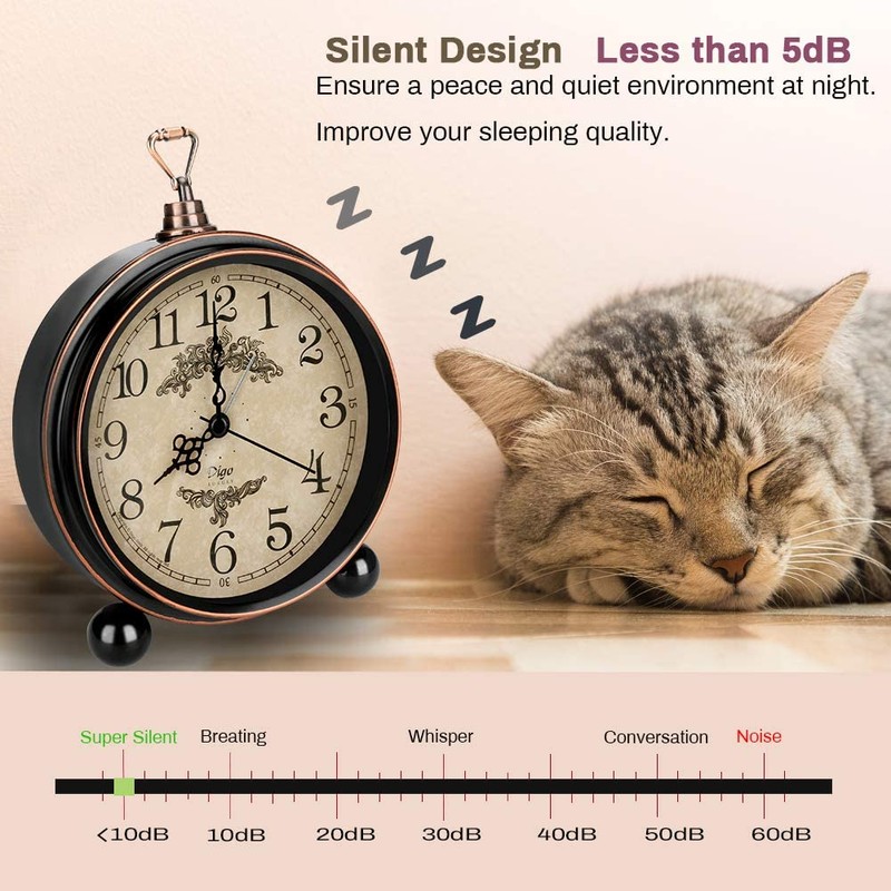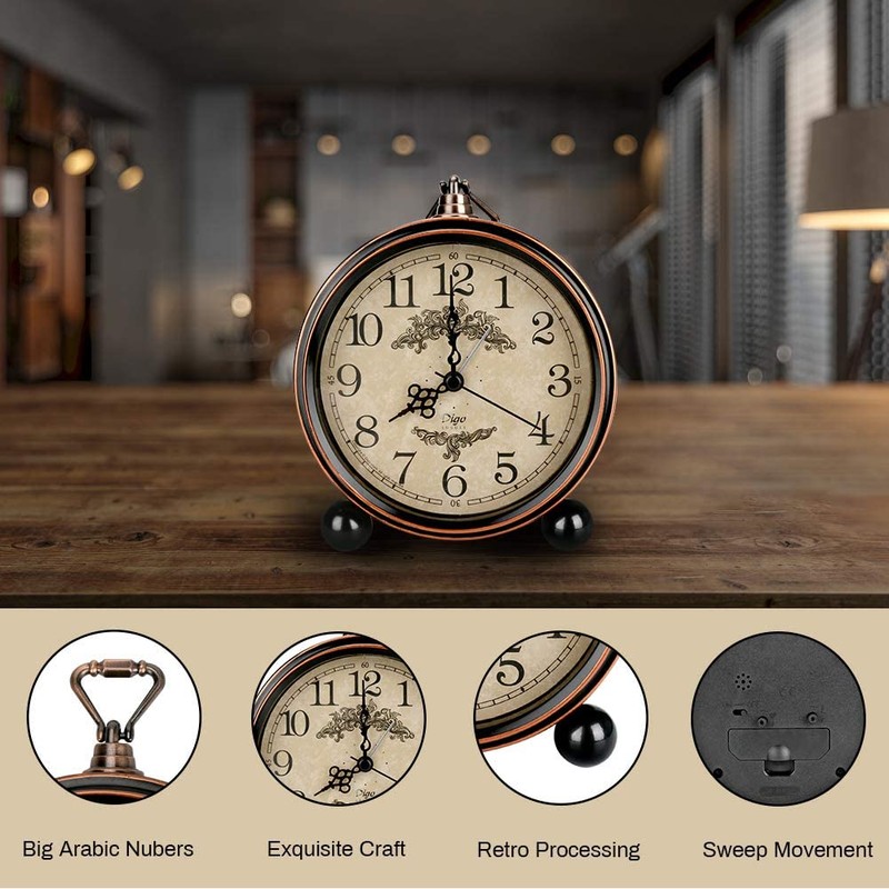 Reloj Despertador Retro Para Dormitorio, Dispositivo De 5, 3 Pulgadas Vintage Sin Tic-Tac Funciona Con Pilas Para Decoración Del Hogar, Vintage