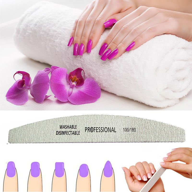 Limas de uñas profesionales, Set de herramientas de manicura curva pulidora, herramienta de diagnóstico 100/180, lote de 5 unidades