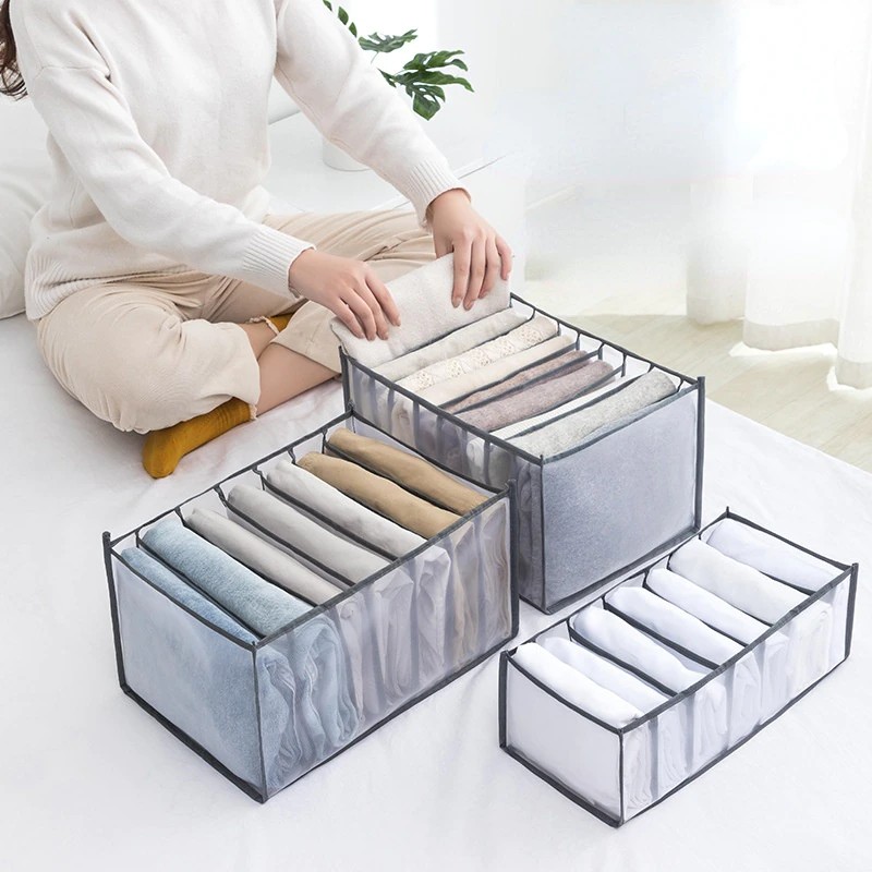 Caja De Almacenamiento De 7 Rejillas Para Pantalones Vaqueros, Cajas Almacenamiento Y Compartimento Ropa, Guardarropa Cajón Organizador, Separador De Pantalones Y Calcetines