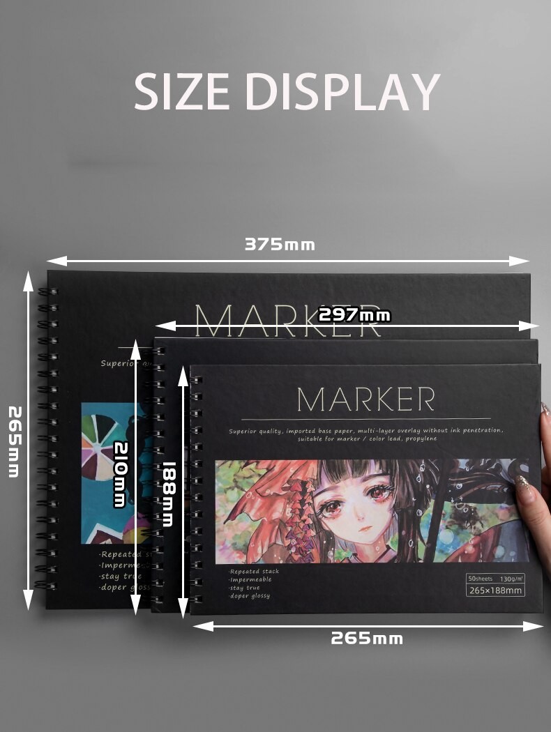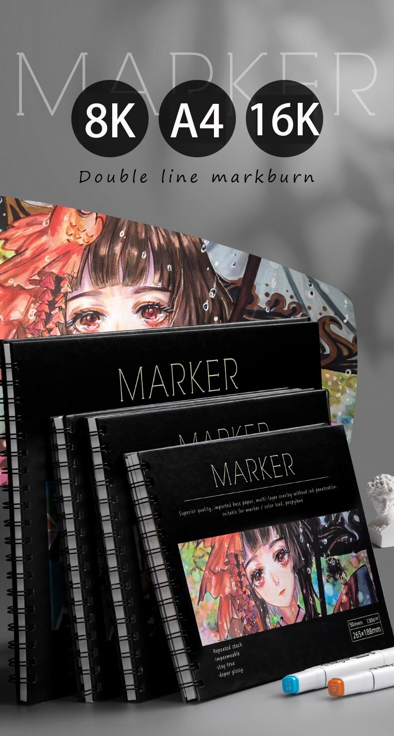 8K/16K/A4 Marker Pad 50 hojas 130g papel profesional sin penetración álbum de dibujo cuaderno de bocetos para estudiantes artistas suministros de arte
