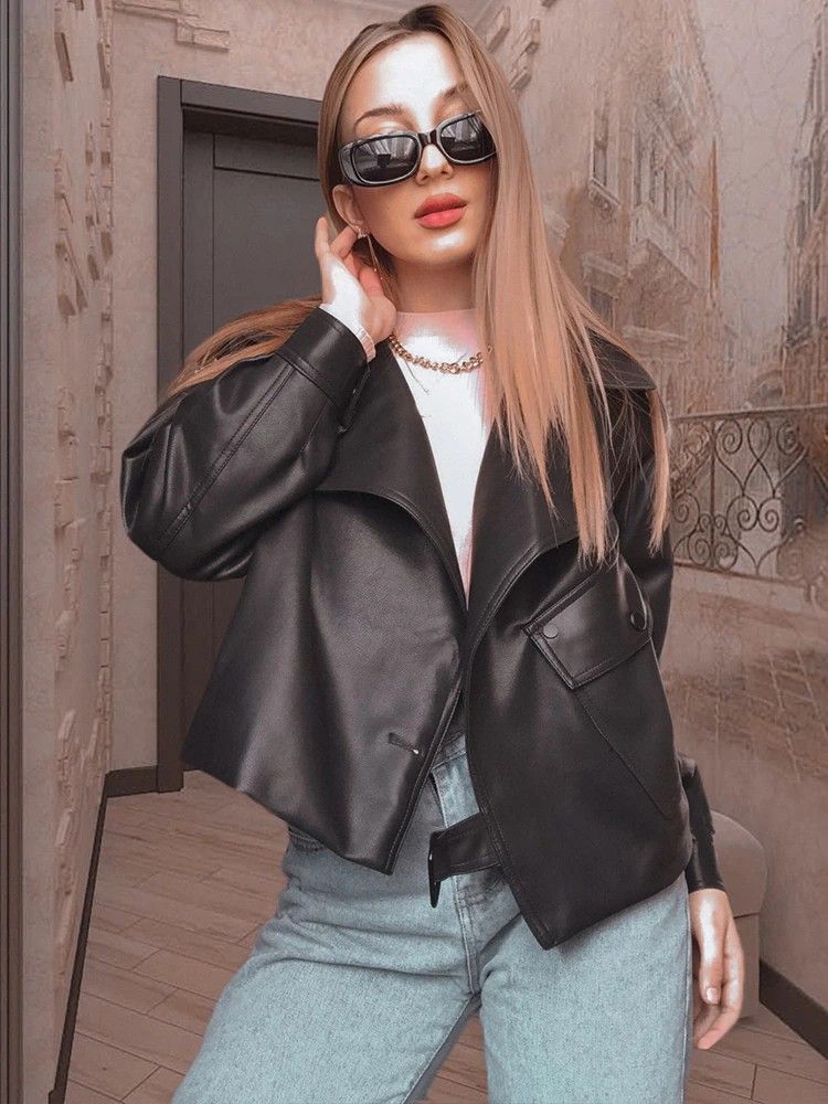Ailegogo-Cartera De Cuero Para Mujer, Chaqueta De Campera, Abrigo Chaqueta De Cuero Nueva Llegada Invierno Otoño, El más nuevo