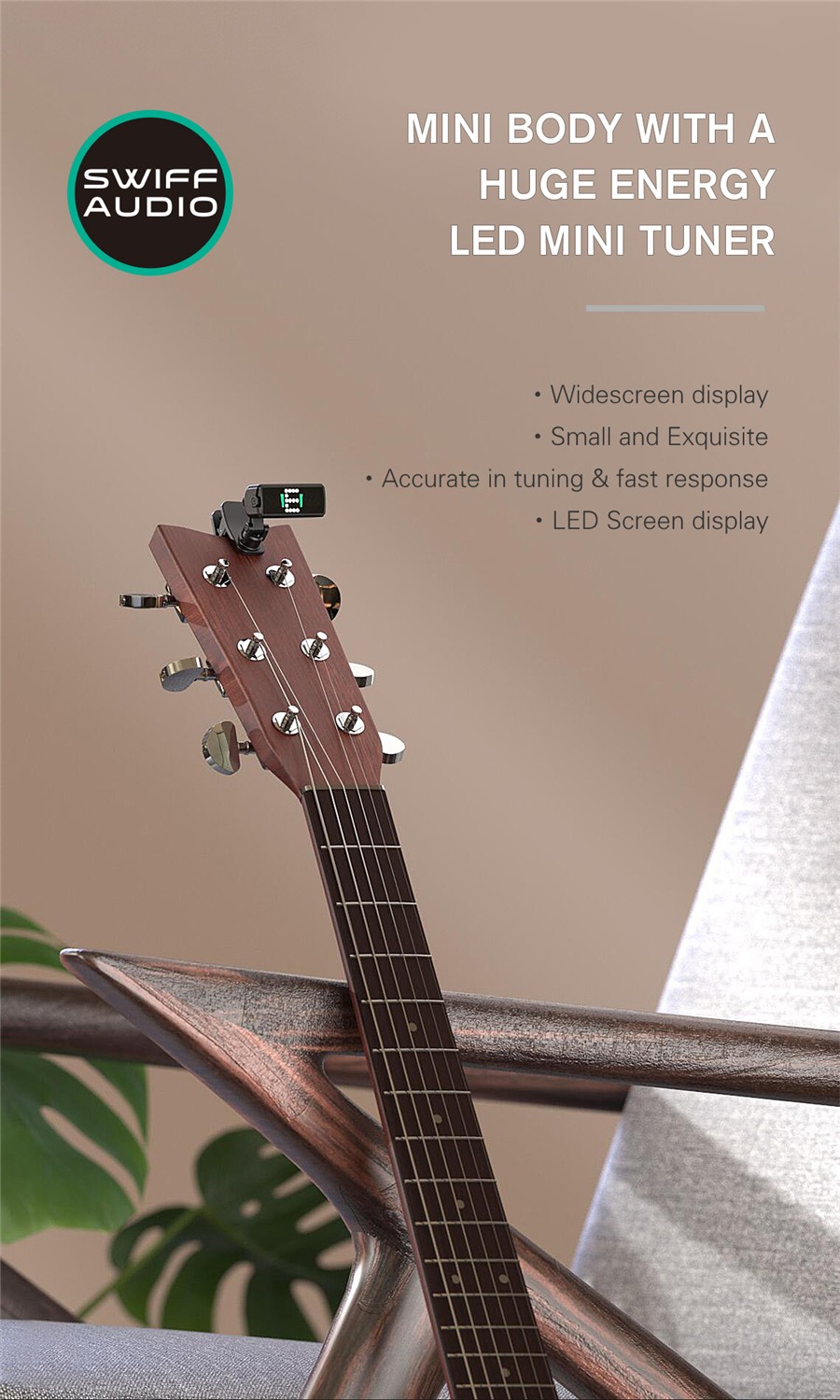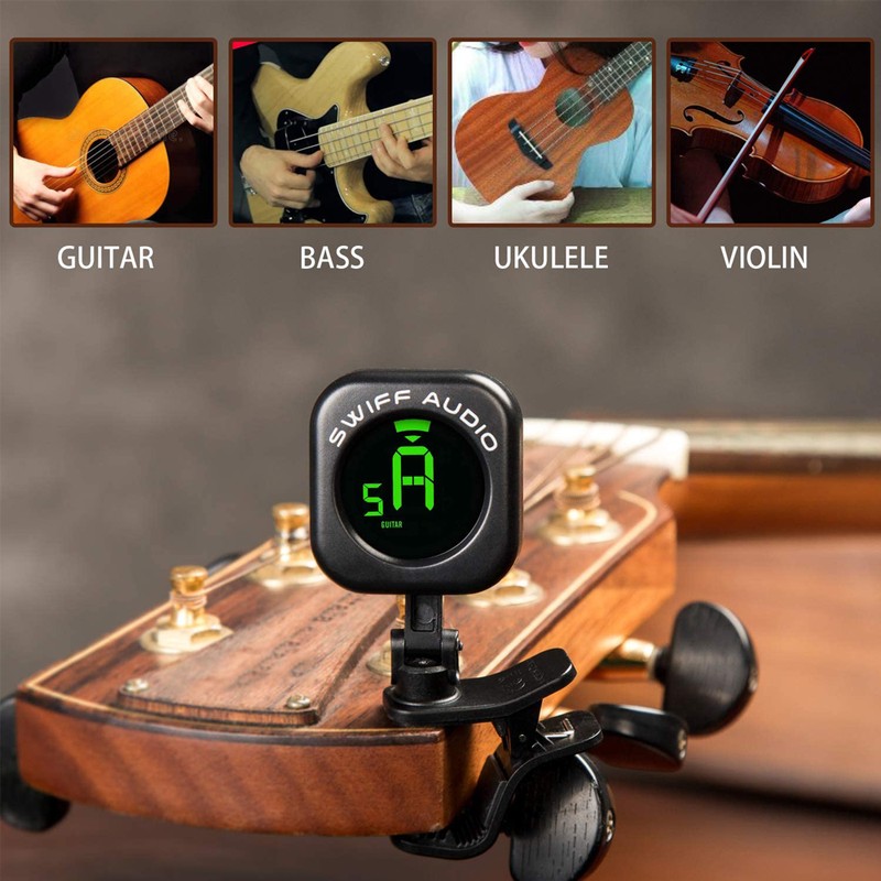 Afinador de guitarra SWIFF A12, sintonizador de encendido Micro Clip de alta precisión, sintonizador de guitarra eléctrica de apagado automático con pantalla VA fácil de leer para todos los 12 instrumentos de cuerda graves, ukelele, violín, cromática.