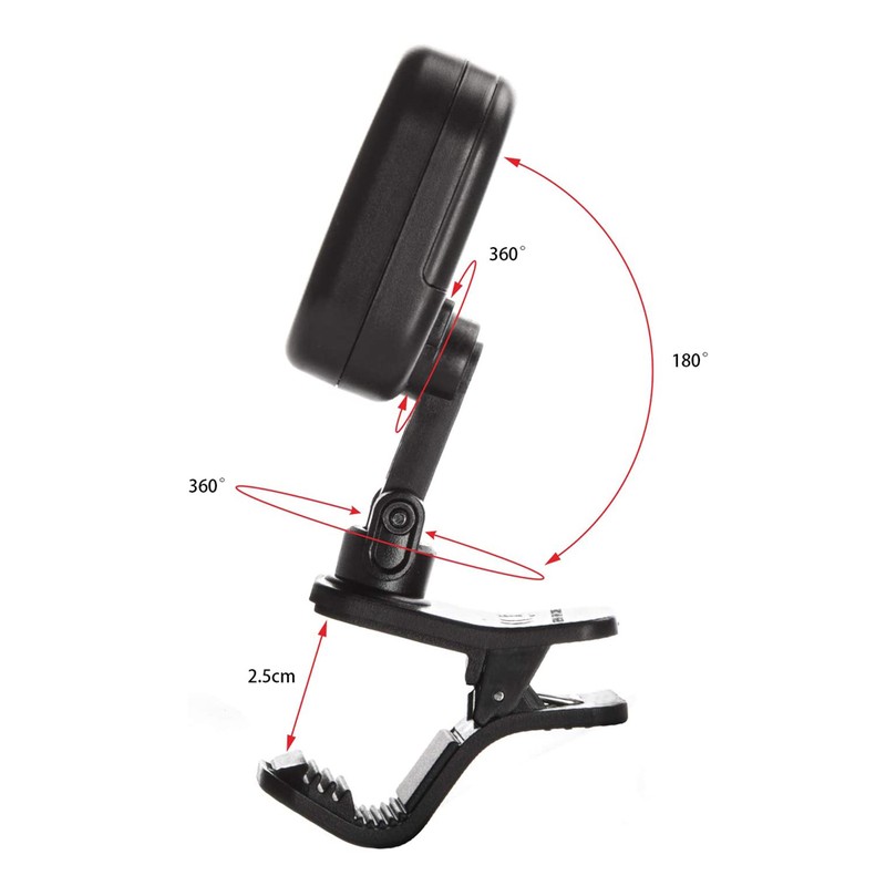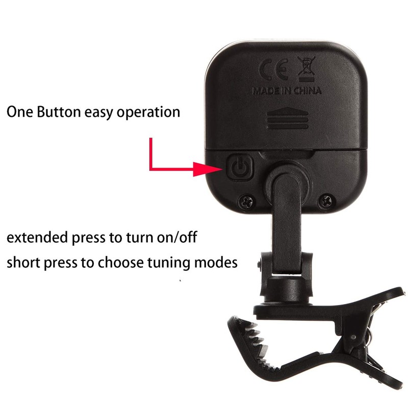 Sintonizador de clip de tamaño compacto para cromática/Guitarra/Bajo/Ukelele/violín.