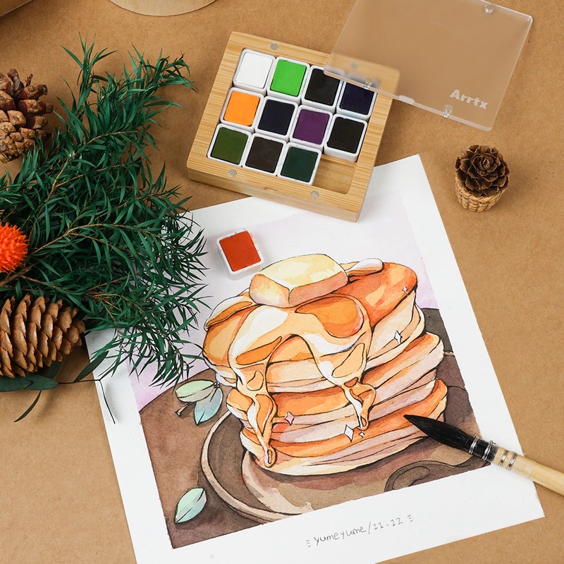 Arrtx-Caja De Paleta De Acuarela Bambú Portátil, Diseño Cubierta Deslizante Magnética Única, Paleta Pigmentos, Bandeja Almacenamiento De Pintura
