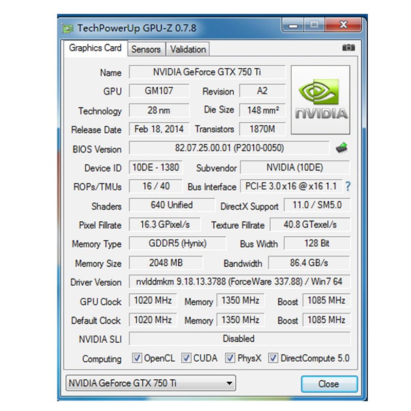 Tarjeta gráfica de vídeo ASUS GTX 750Ti-OC 2GD5