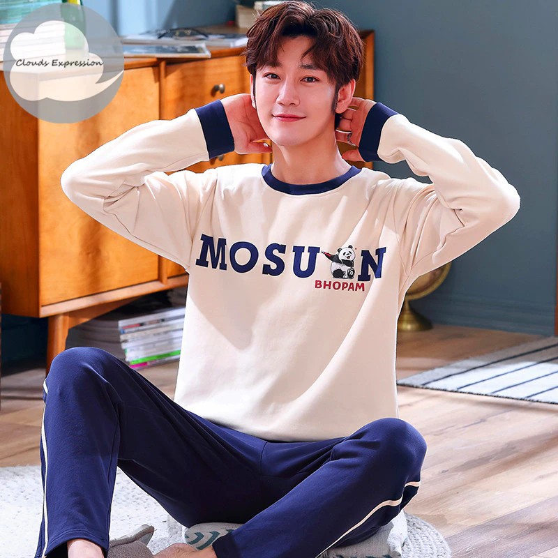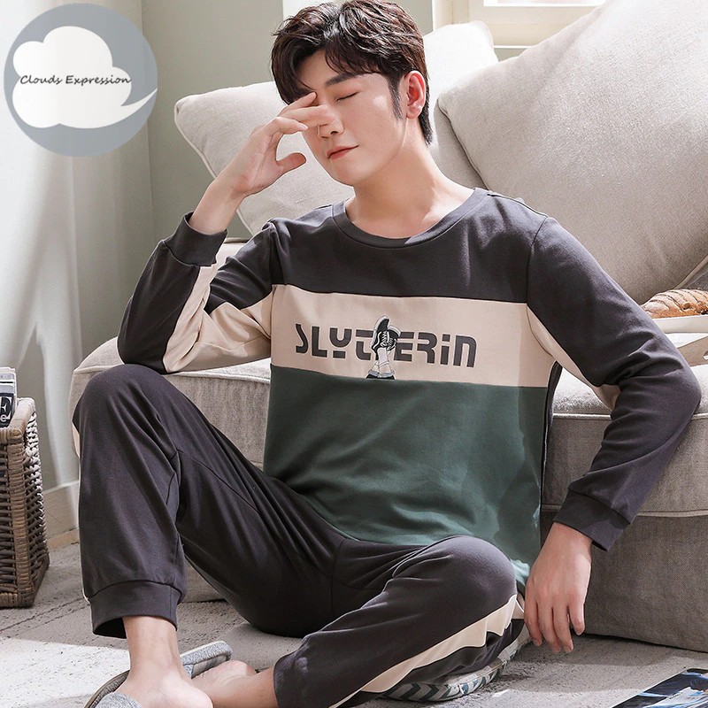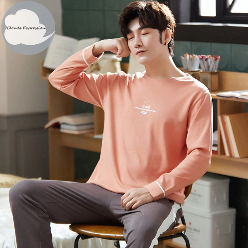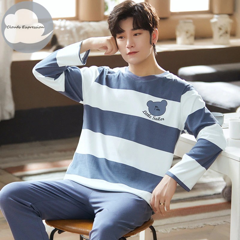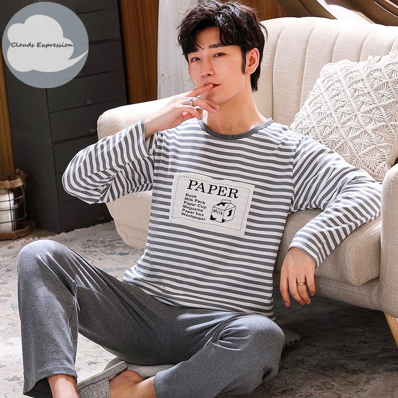 Pijamas De Algodón Para Hombre, Ropa De Dormir A Rayas Con Letras, Conjuntos Pijama Dibujos Animados Pijamas Informales De Talla Grande 4Xl, Otoño E Invierno