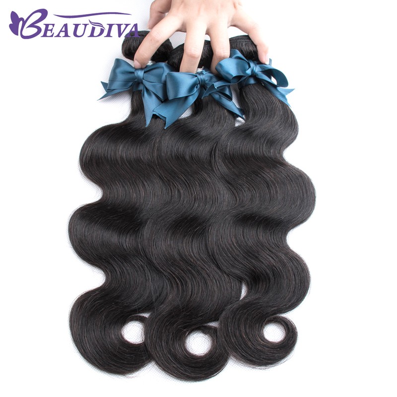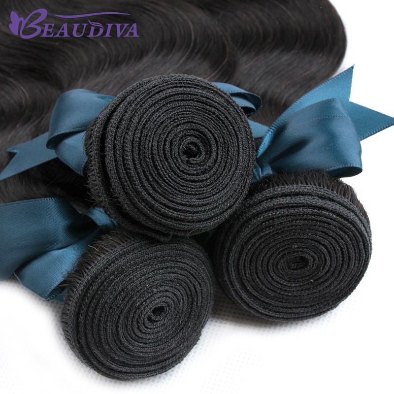 Beaudiva-Extensiones De Cabello Humano Remy Brasileño, Postizo De Pelo Ondulado 3 Mechones, Con Cierre De Malla