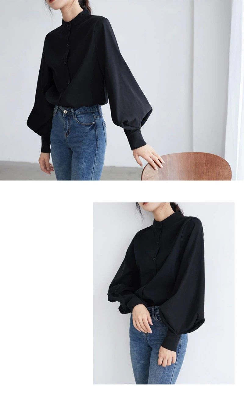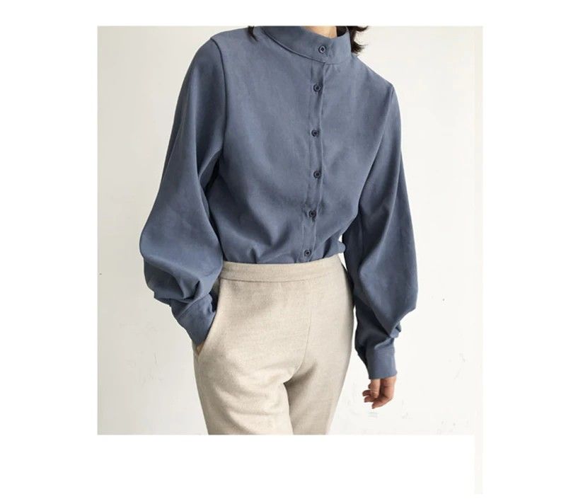 Blusa De Manga Faro Para Mujer, Camisa De Cuello Alto, Lisa Vintage Para Trabajo Y Oficina, Otoño E Invierno