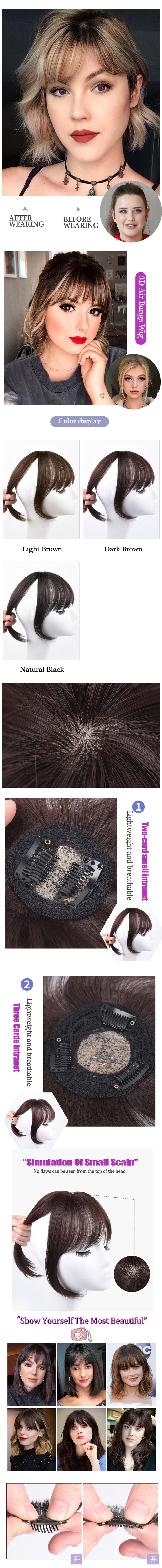 Clip Negro/Marrón Claro En Flequillo, Accesorios Para El Cabello, Flequillo Falso Sintético Clip En Extensiones De Cabello, Piezas De Cabello