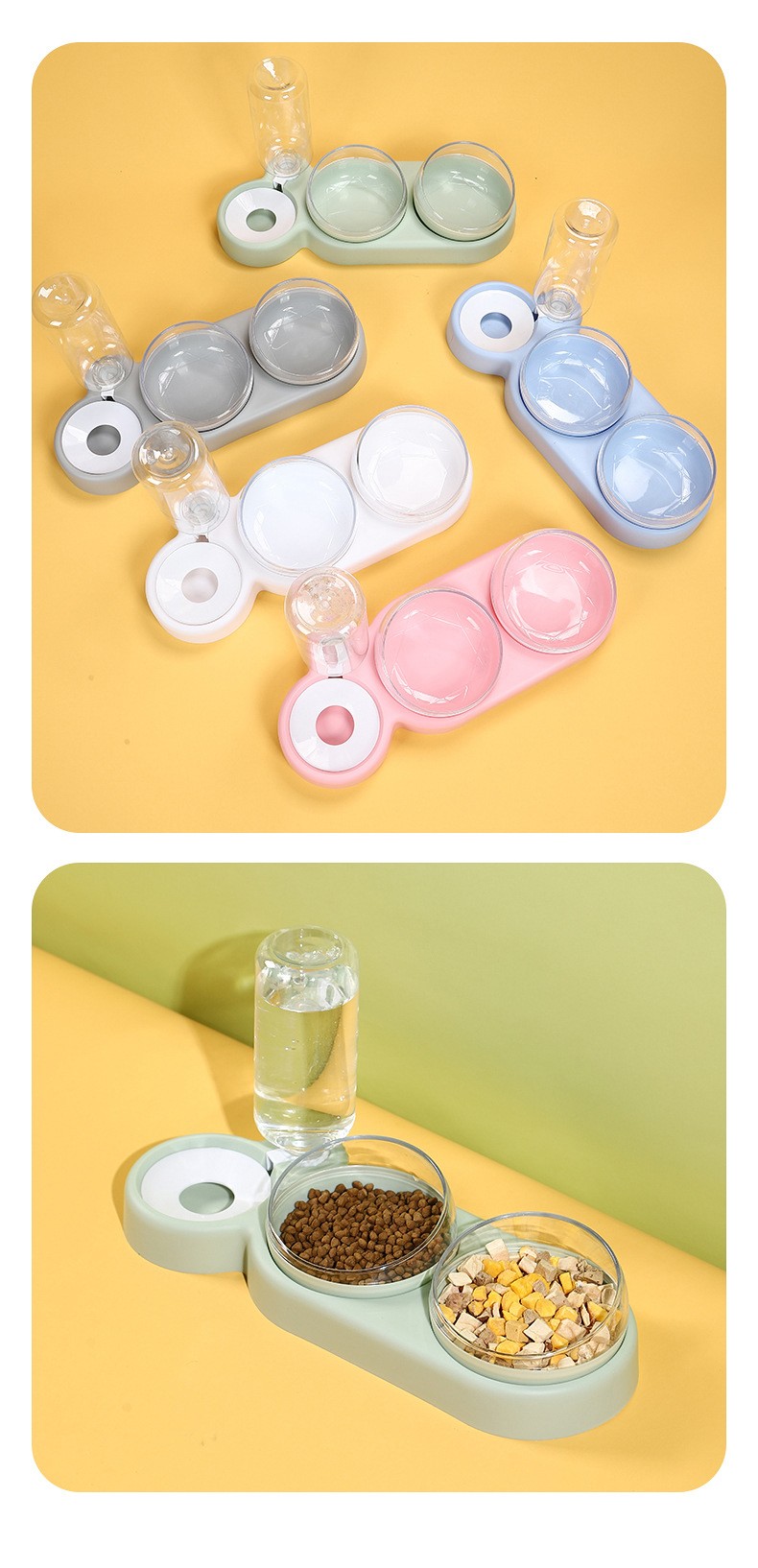Cat Food Bowl Automatic Feeder Water Dispenser Pet Dog Cat Food Container Drinking Raised Stand Dish Bowl Pet Waterer Feeder