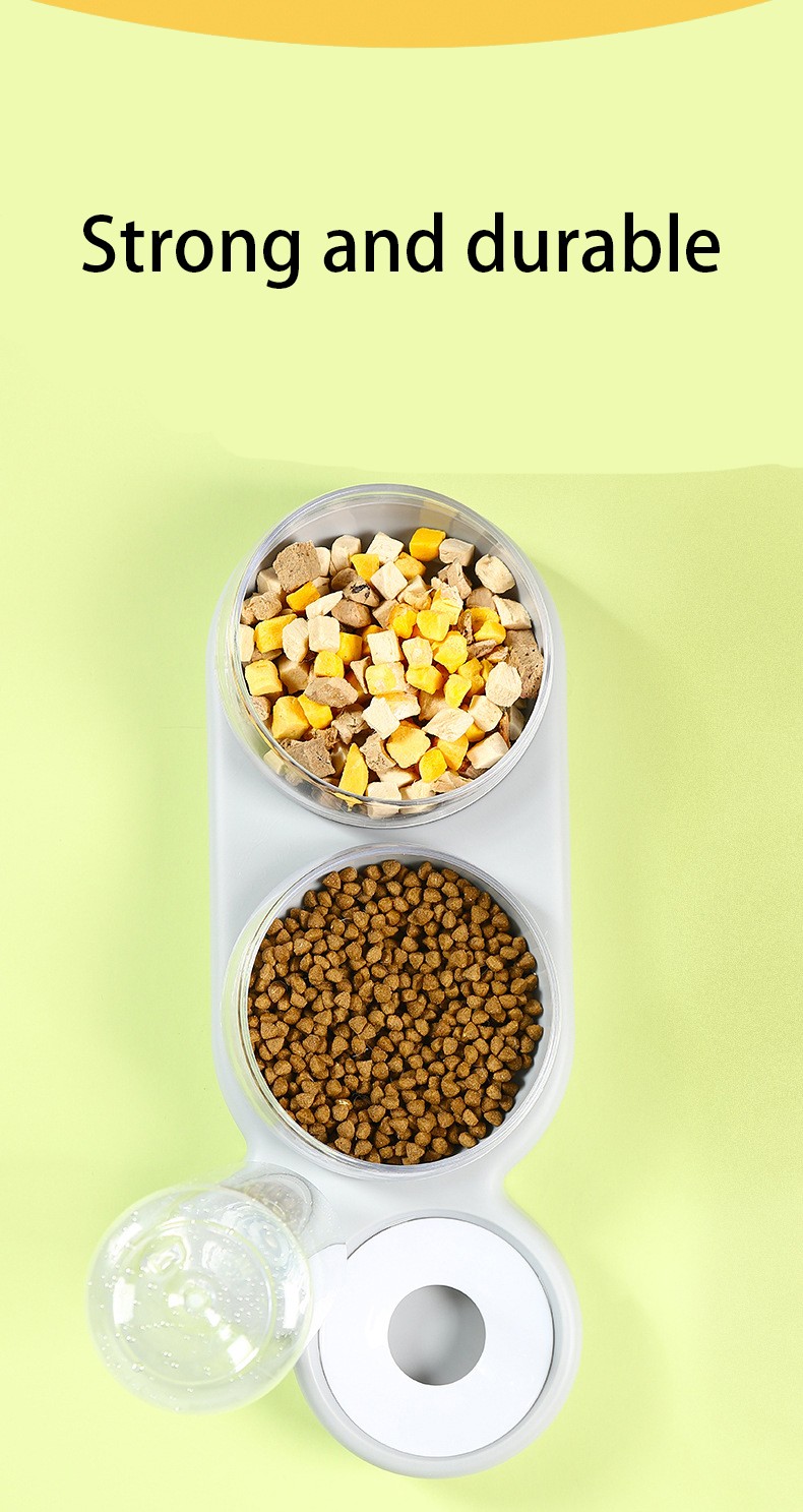 3.Stability: The bottom of the dog food and water bowl with a standing dispenser is equipped with a non-slip rubber pad, Can make it more stable when being used by pets.