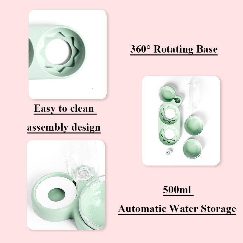 4.Automatic water dispenser: The siphon principle of the cat food bowl, stable control of water level, automatic water supply. 500ml large capacity is enough to drink 1-2 days for your pet.