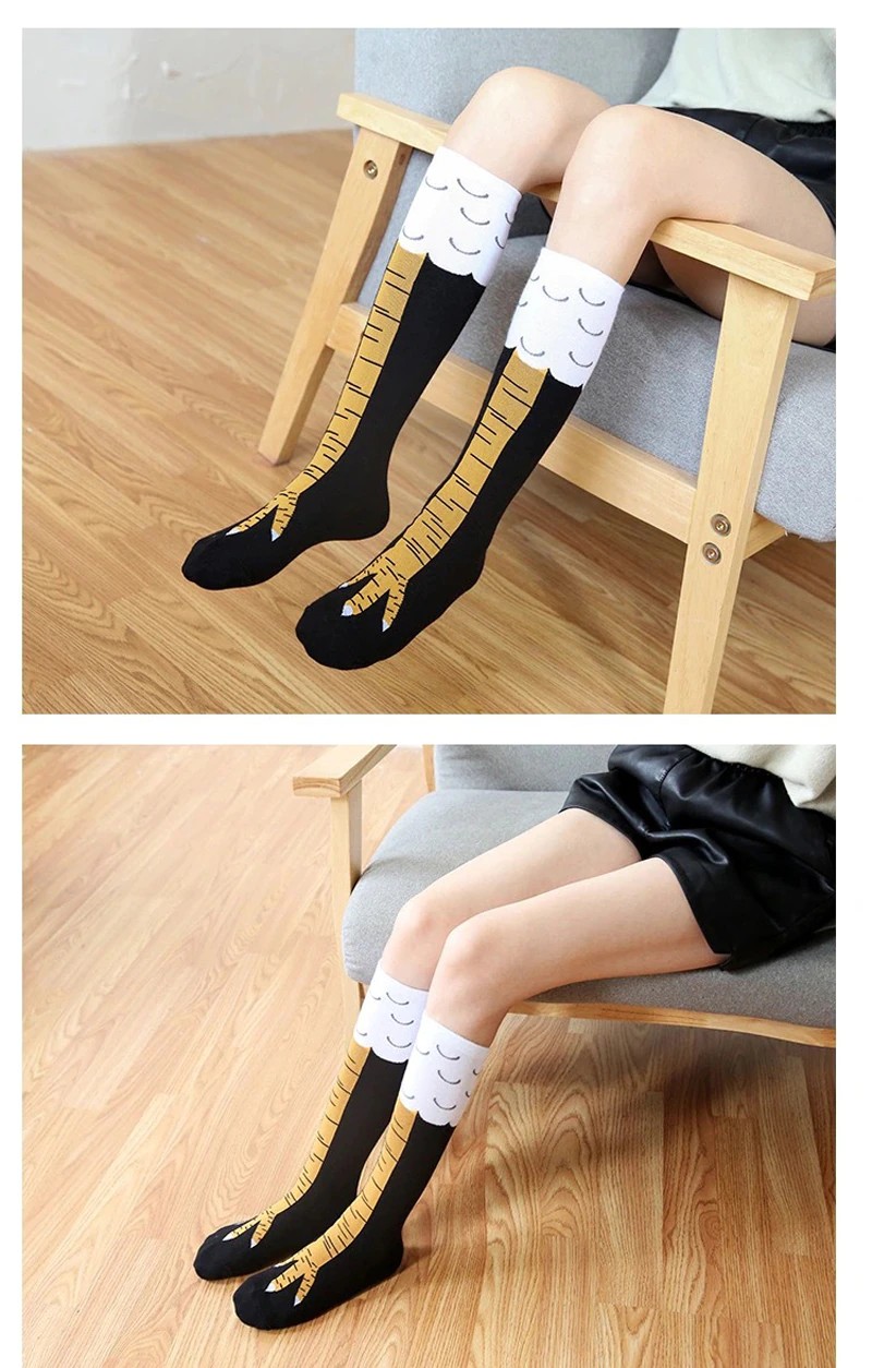 Calcetines Largos Con Estampado 3D De Patas De Pollo Para Mujer, Medias Algodón Con Dibujos Animados Divertidos, Estampados Creativos, Por Encima De La Rodilla