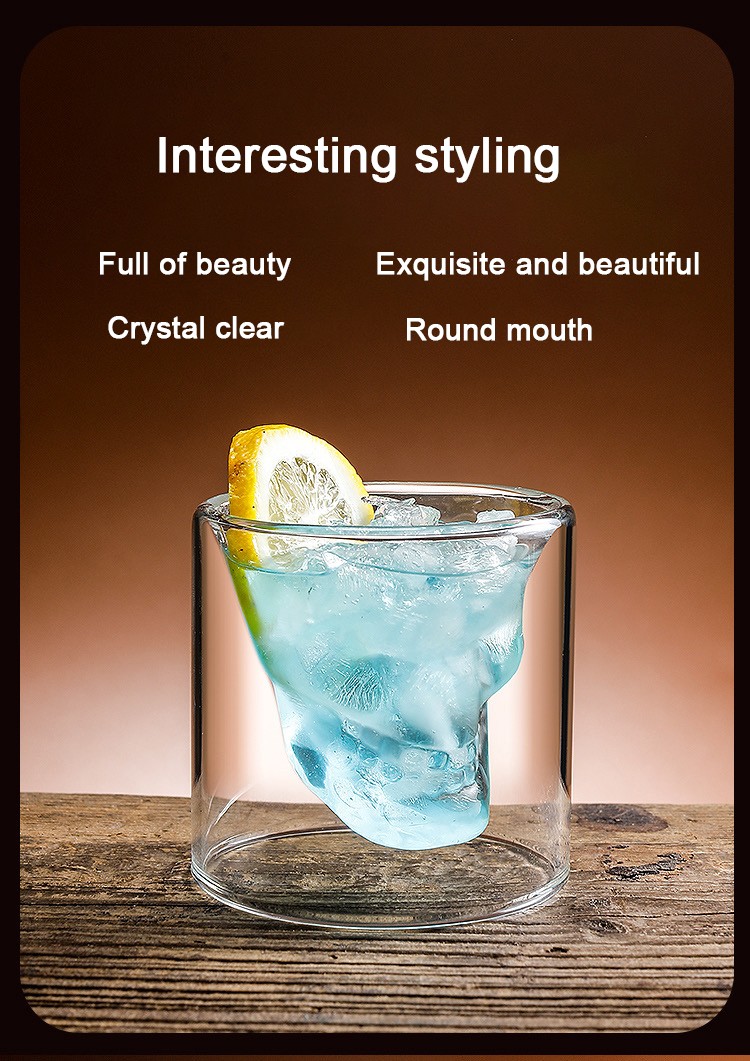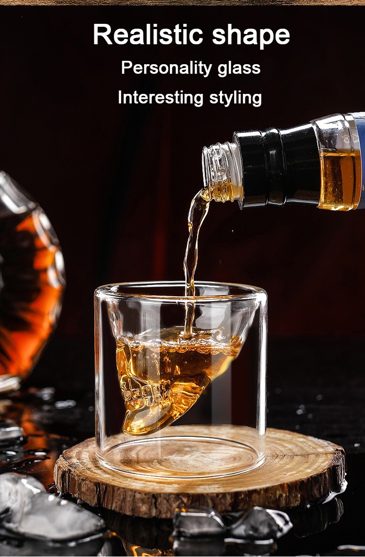 Taza de café taza de vidrio de cabeza de calavera de cristal transparente de doble capa para el hogar whisky vino Vodka Bar Club cerveza copa de vino