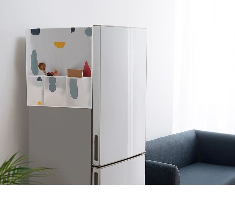 Descripción 1. material de PEVA grueso, tela suave, transpirable, a prueba de polvo e impermeable 2. Diseño lavable, extendido en el refrigerador, decora el ambiente del hogar 3. No te preocupes por el polvo del refrigerador 4. Una cosa para múltiples propósitos, tres bolsillos en cada lado 5. Excelente mano de obra, líneas de coche uniformes y planas, Fuerte y duradero, no se cae fácilmente Nombre del producto: cubierta antipolvo del refrigerador peso del producto: aproximadamente 130*54cm peso del producto: 72G