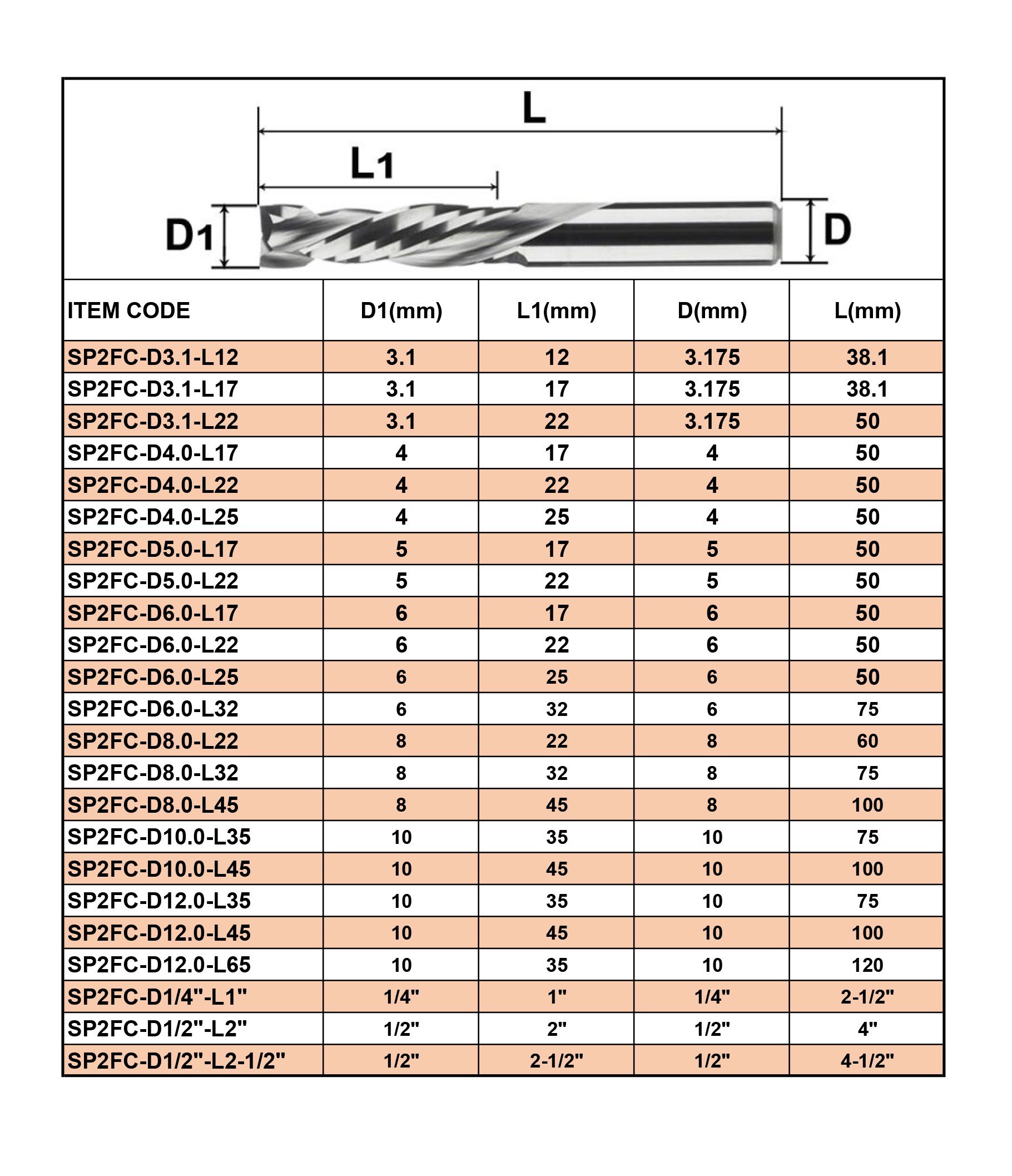 (2) Tipo: molinos de dos flautas en espiral de carburo sólido para compresión