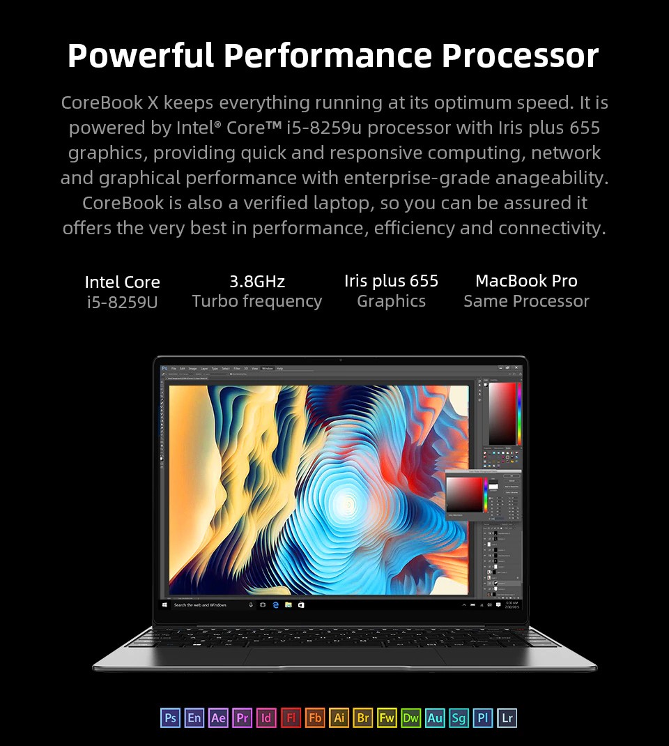 Chuwi-Ordenador Portátil Corebook X, 14 Pulgadas, 2K Intel Core I5-8259U Iris Plus Gráficos 655 Gpu 16Gb De Ram 512Gb Ssd, Windows 10