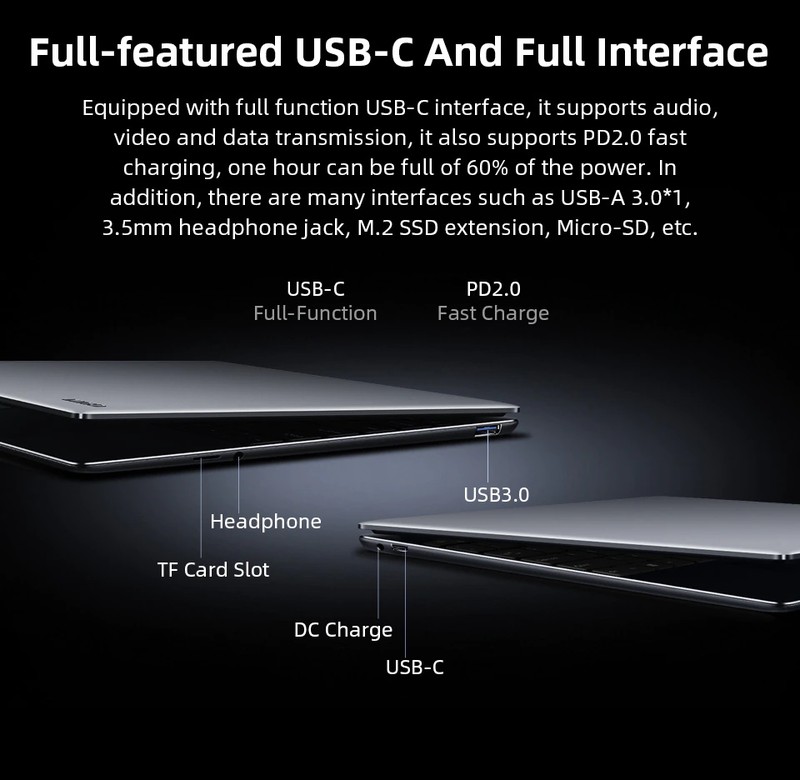 ![]() Connectivity | Ranura M.2: 1 unidad, ocupada Ranura para tarjeta MicroSD: Sí USB: USB-A 3,0*1, tipo C * 1 (función completa) Conector de auriculares de 3,5mm: Sí Puerto DC: ∮ 3,5 MM |