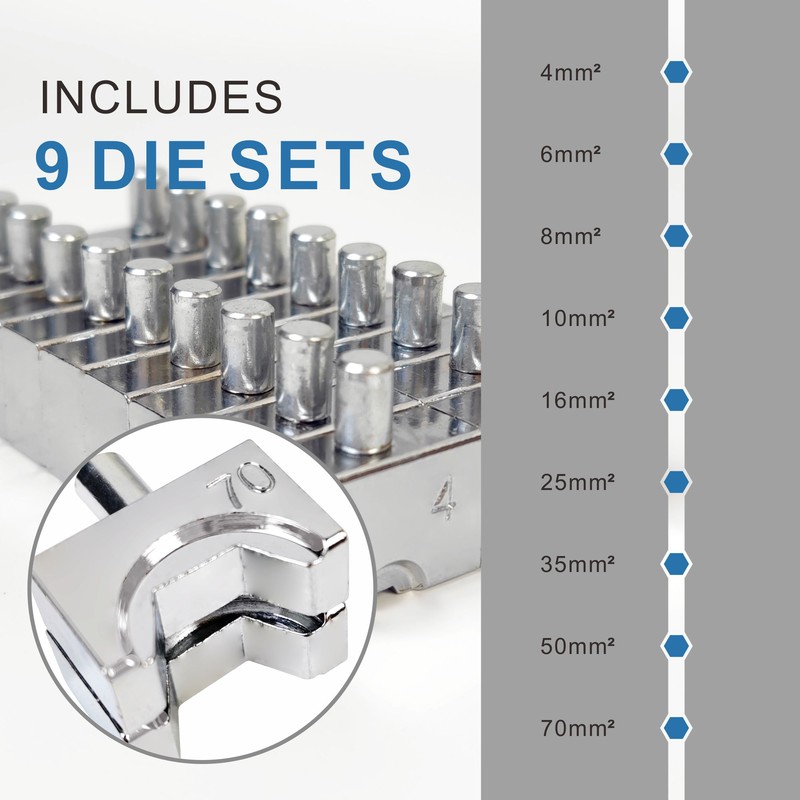 Crimpadora Hidráulica Corrugadora De Terminal De Cable, 8 Toneladas, 4Mm Cuadrados A 70Mm Cuadrados, Kit Herramientas Cable De Terminal Eléctrico Con 9 Troqueles