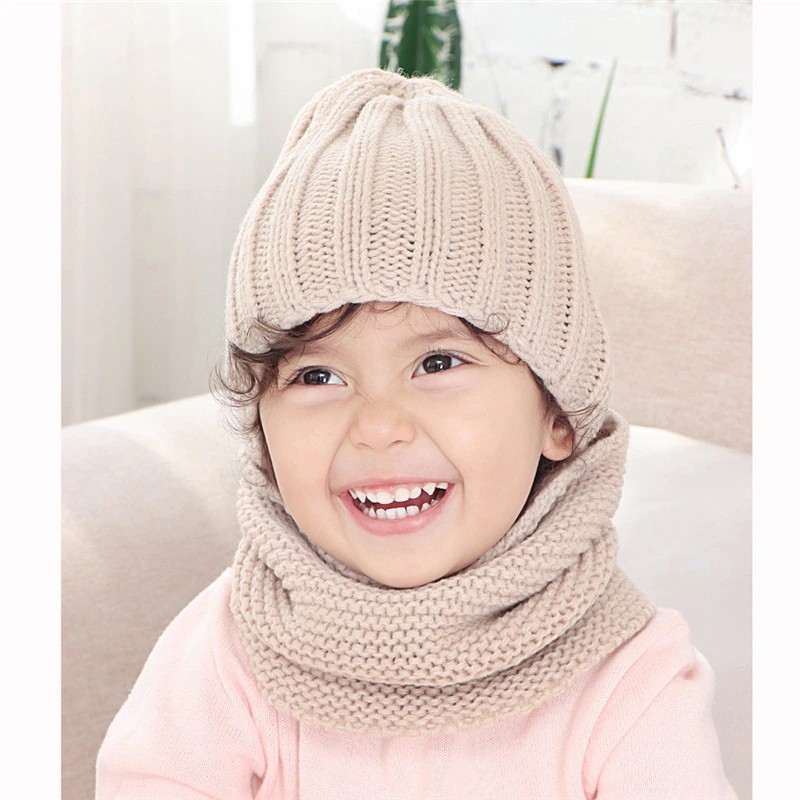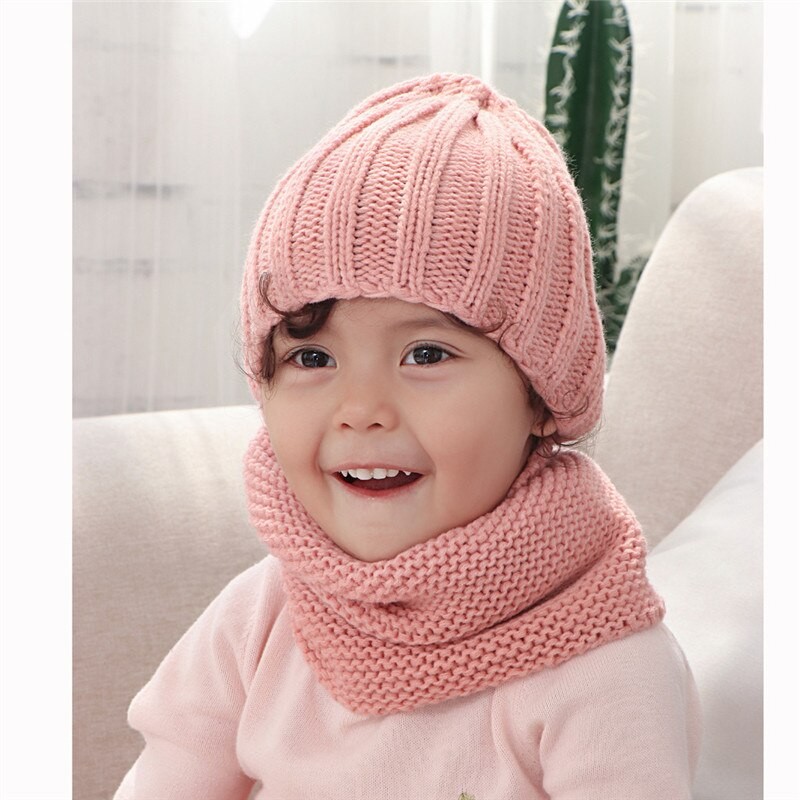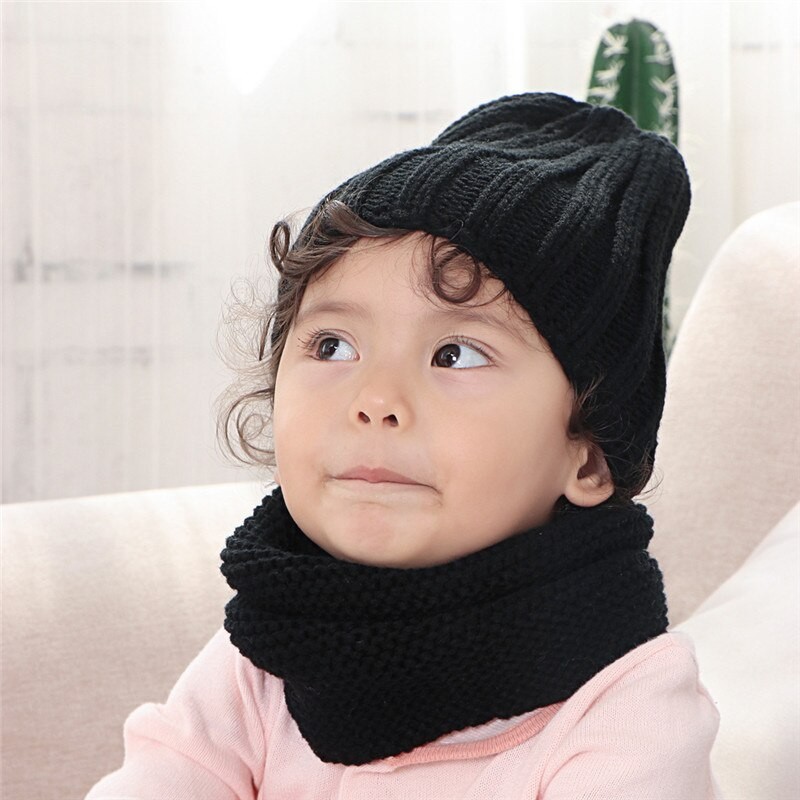 Conjunto De Gorros Y Bufandas De Punto Para Niños Y Niñas, Conjunto Gorros Cálidos Acrílico Sólido Multicolor, Accesorios De Invierno