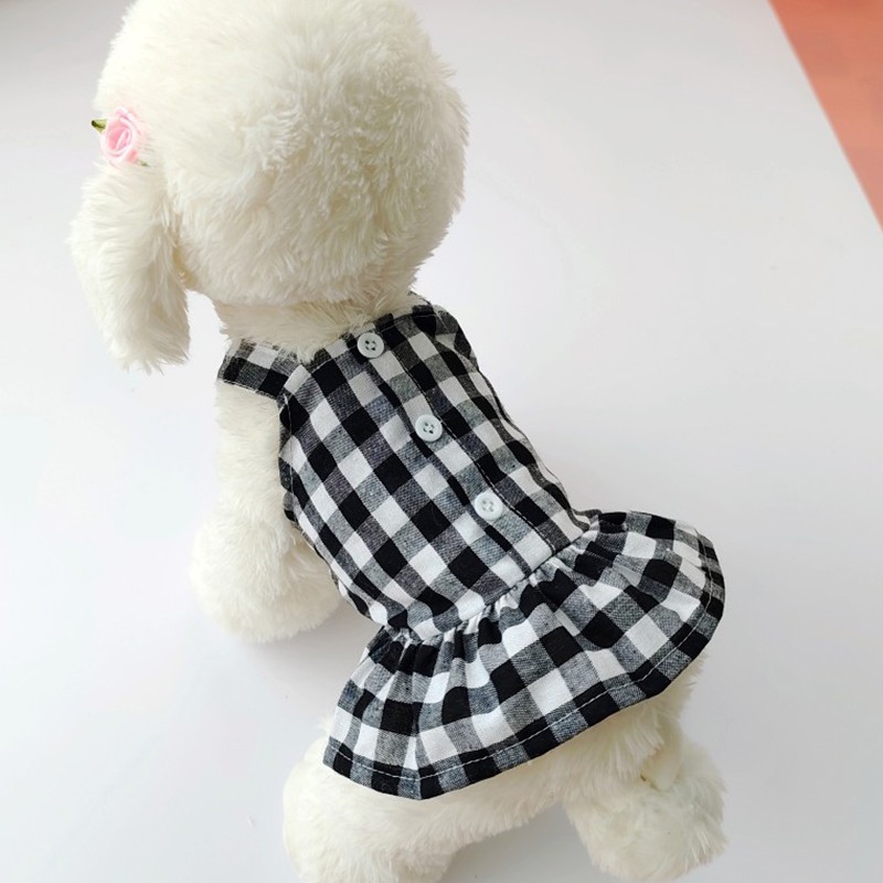 Falda a cuadros para mascotas, material de algodón, tela cómoda. El diseño a cuadros aumenta la sensación de moda de la falda. La hebilla en la parte posterior hace que sea más conveniente para las mascotas.