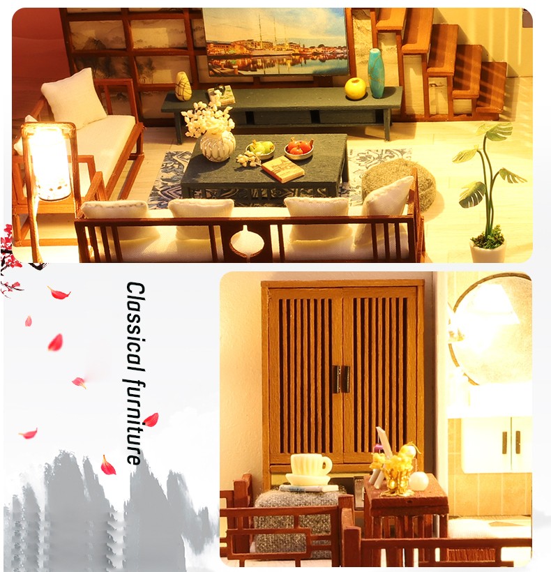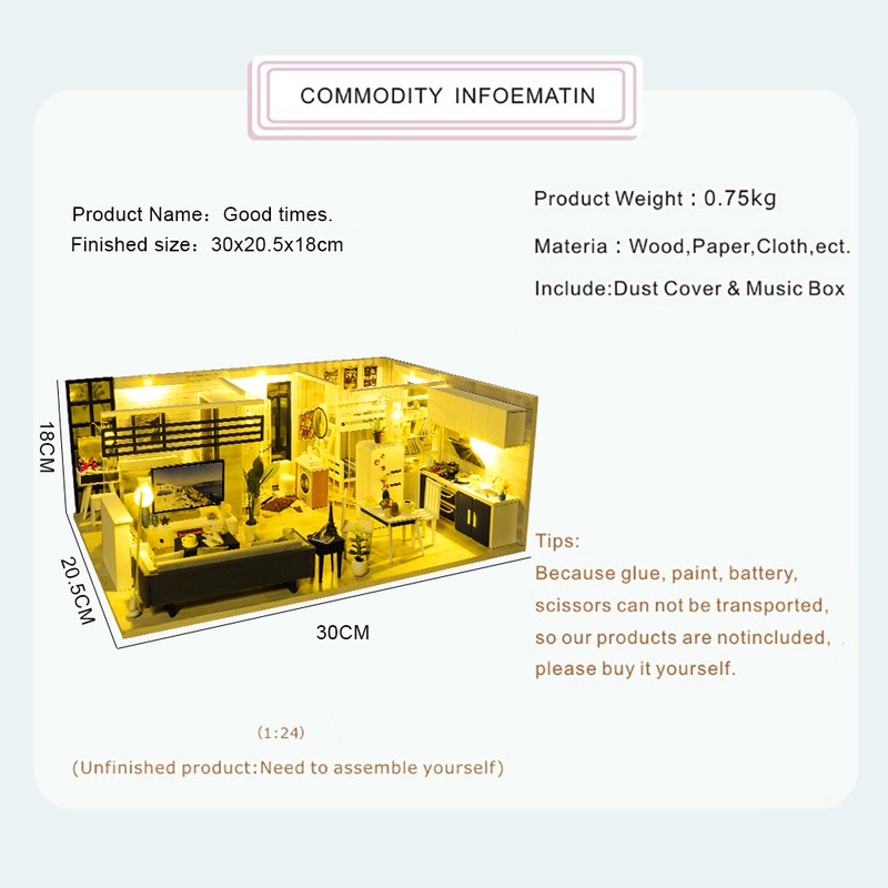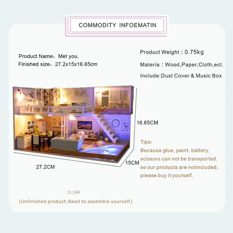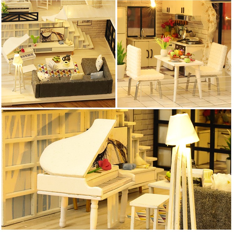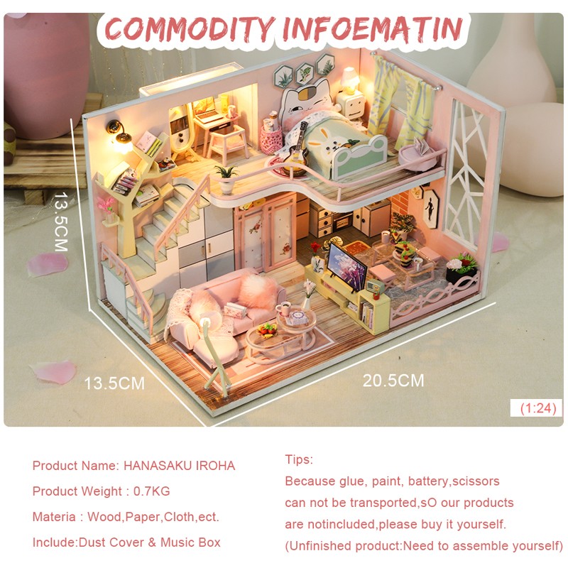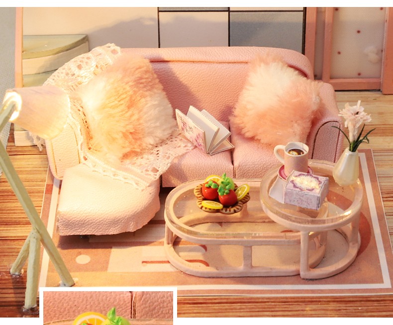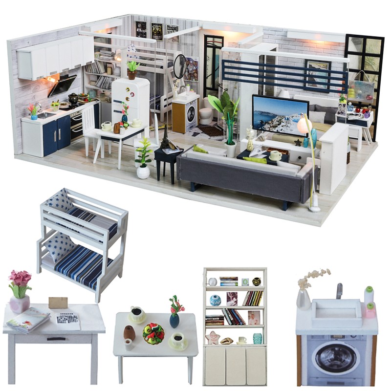 Mini casa de bricolaje para muñecas, todos los muebles son igual a la imagen mostrada, viene con todas las piezas, necesita montaje.