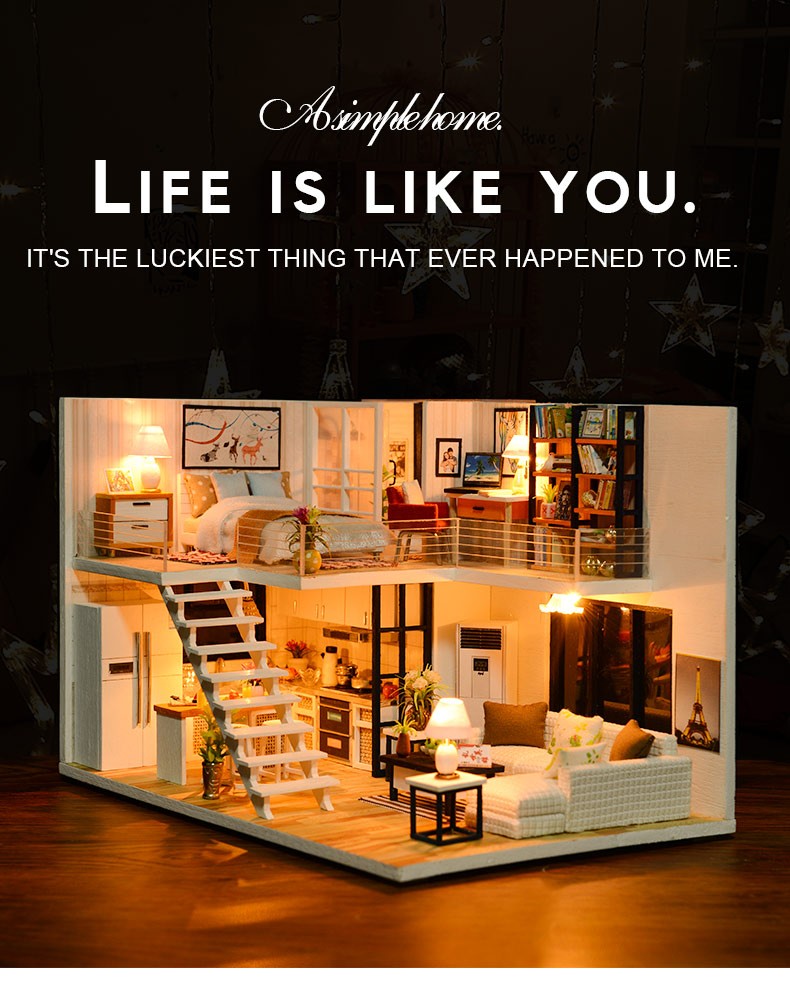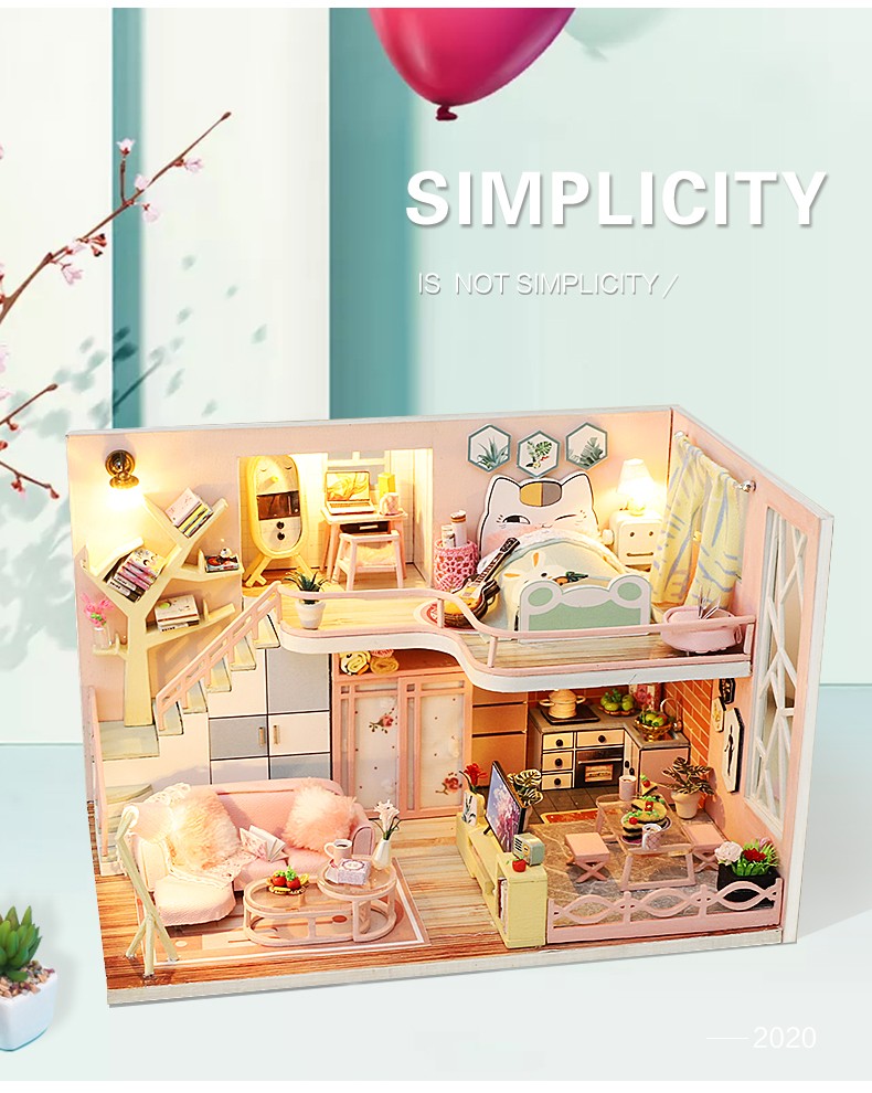 Cutebee-Casa De Muñecas De Madera Para Niños, Kit Muebles En Miniatura Con Led, Juguetes Para Niños, Regalo De Cumpleaños Y Navidad