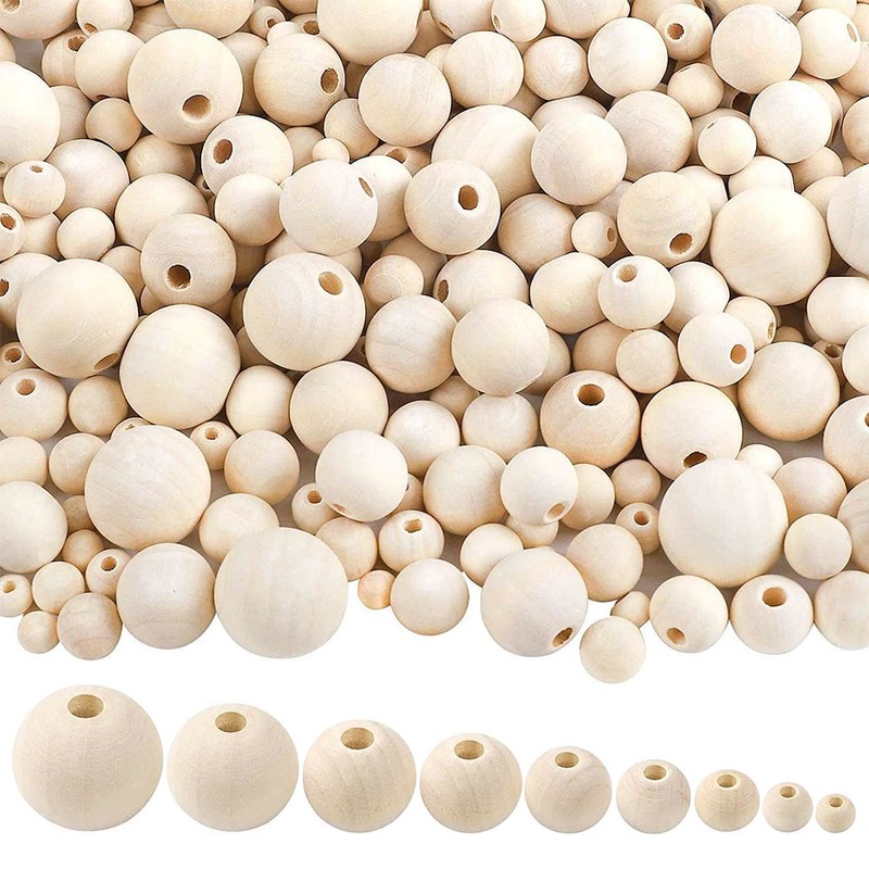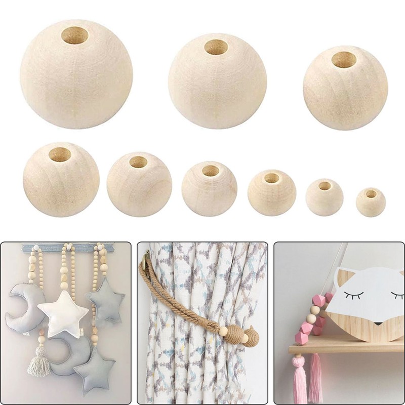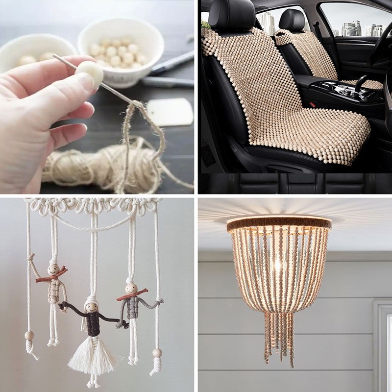 Varios usos. Estas cuentas sueltas artesanales pequeñas y grandes se pueden utilizar para hacer joyas, borlas, atrapasueños, pendientes, pulseras, Rosario, guirnalda de cuentas de madera y otros suministros artesanales. Cuentas artesanales ideales para guirnaldas de granja, decoración del hogar, decoración de oficina, adornos de árboles de Navidad, decoración de fiestas, etc.