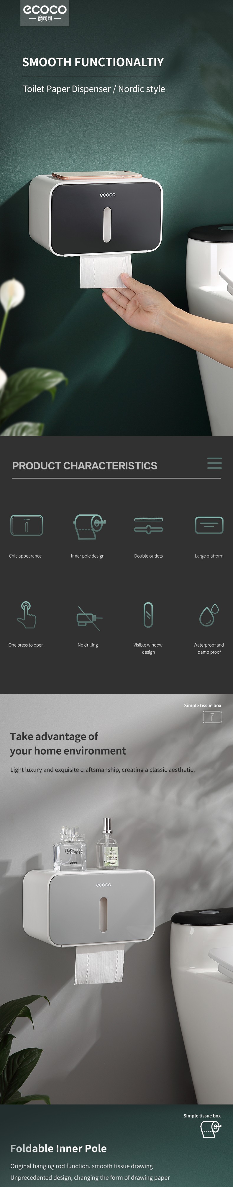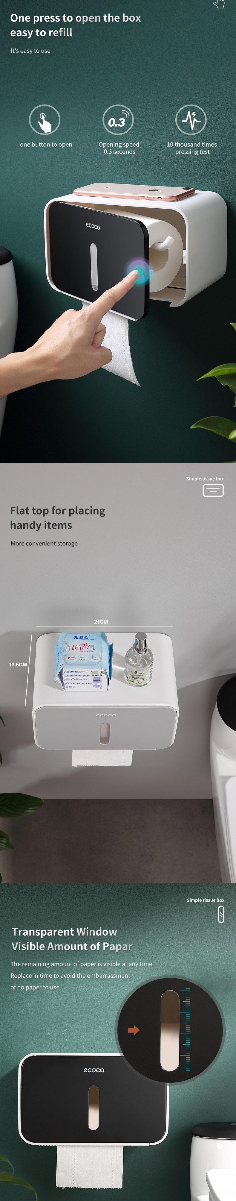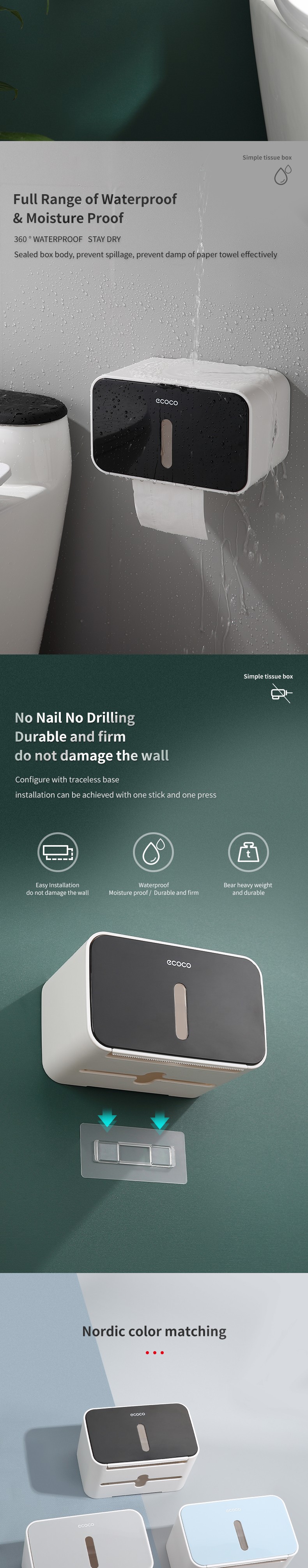 Ecoco-Caja De Toallas De Papel Impermeable, Estante Colocación Artículos Montado En La Pared, Sin Perforación Diseño Simple Creativo, Accesorios De Baño Para El Hogar