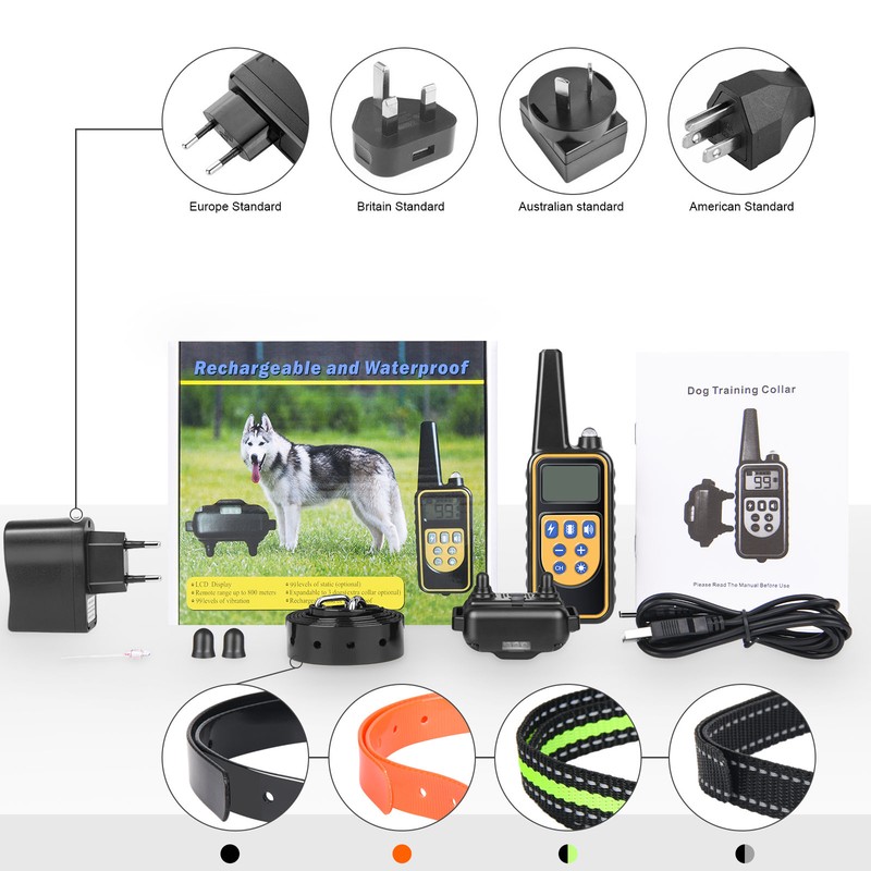 Collar Eléctrico De Entrenamiento Para Perros, Dispositivo Con Control Remoto, Vibración Recargable Impermeable Con Pantalla Lcd Adecuado Para Todos Los Perros, 800M