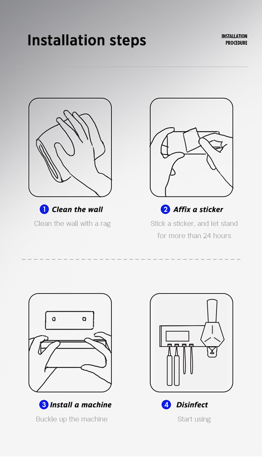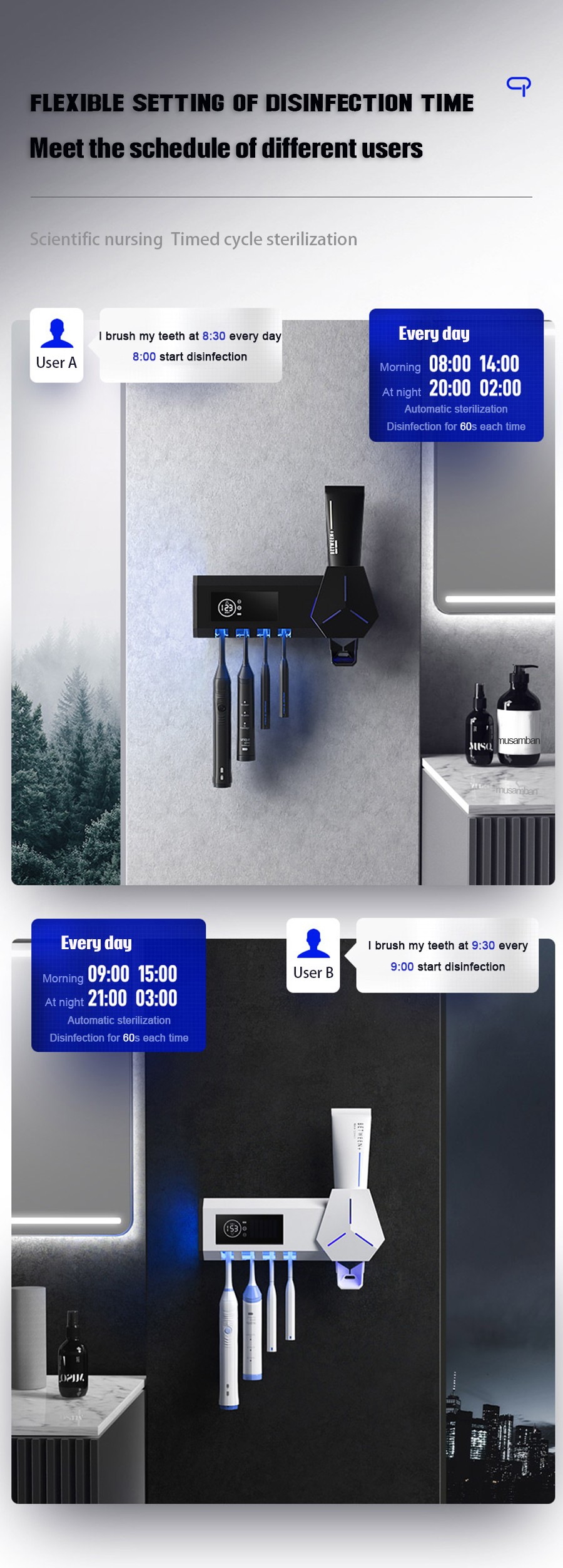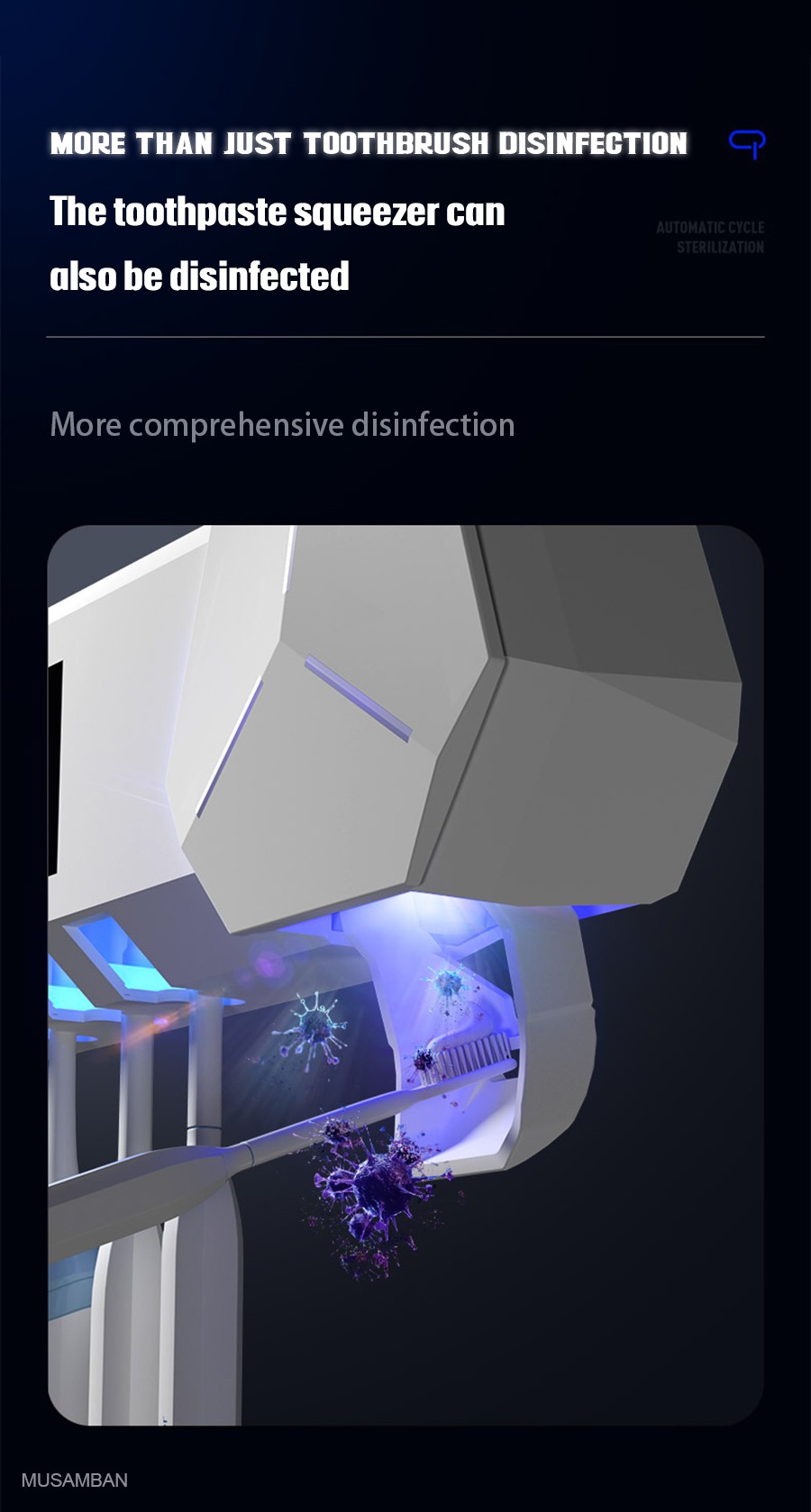 2. El primer producto del mercado que puede desinfectar tanto los cepillos de dientes como la pasta de dientes al mismo tiempo. No solo puede desinfectar los cepillos de dientes, sino también desinfectar las salidas de pasta de dientes, desinfección total.
