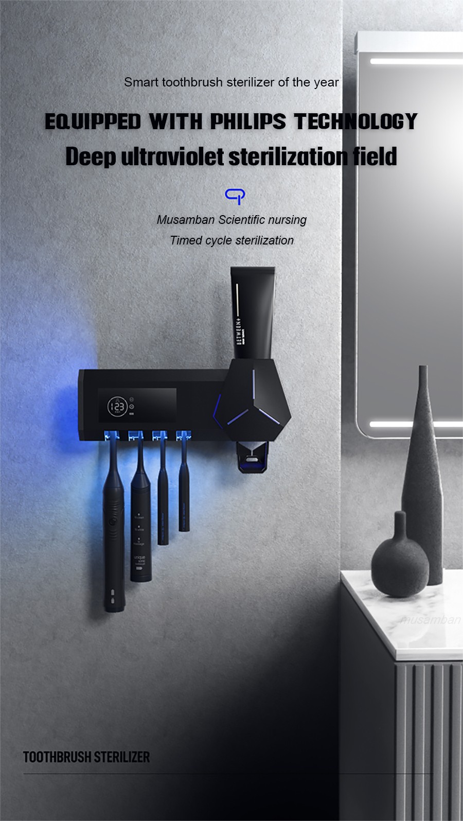 1. Equipado con tecnología de esterilización Philips, esterilización ultravioleta profunda, el efecto del producto está garantizado.
