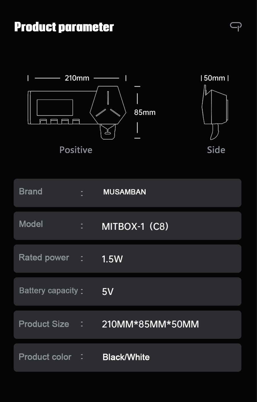 Tamaño del producto: 210mm * 85mm * 50mm