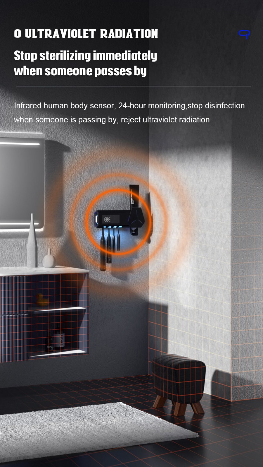 6. Tecnología de inducción del cuerpo humano, deja de esterilizar cuando alguien pasa, evita la radiación ultravioleta.