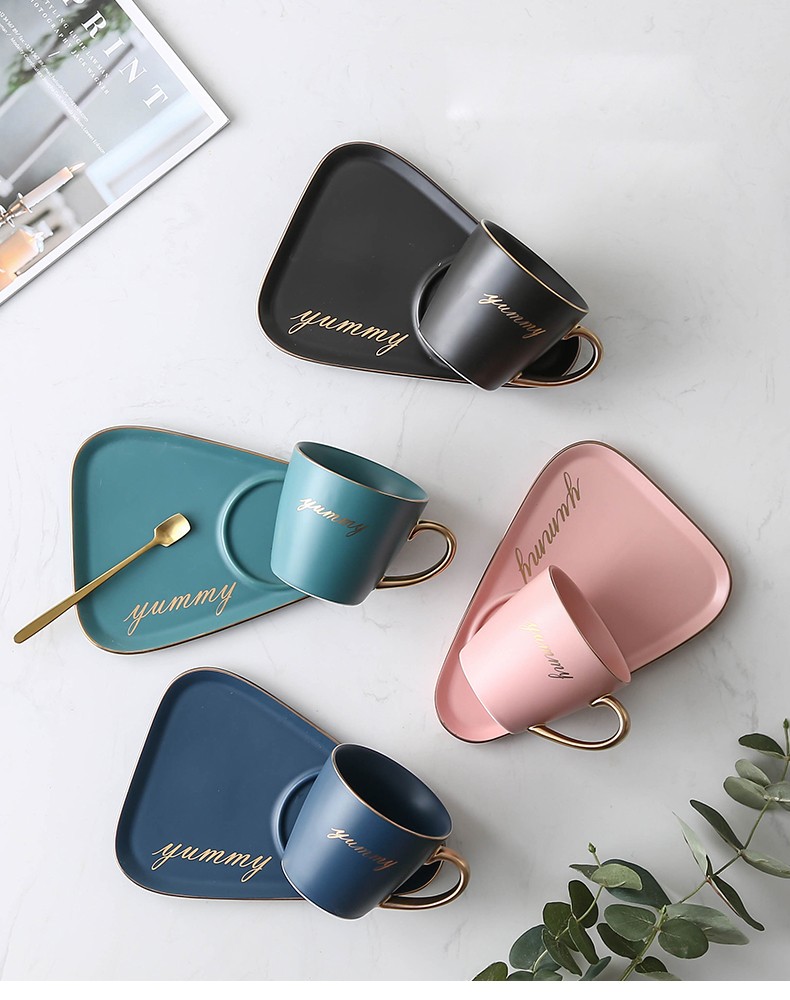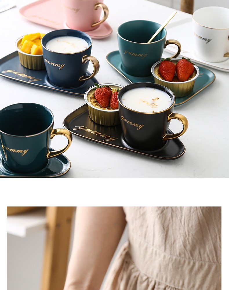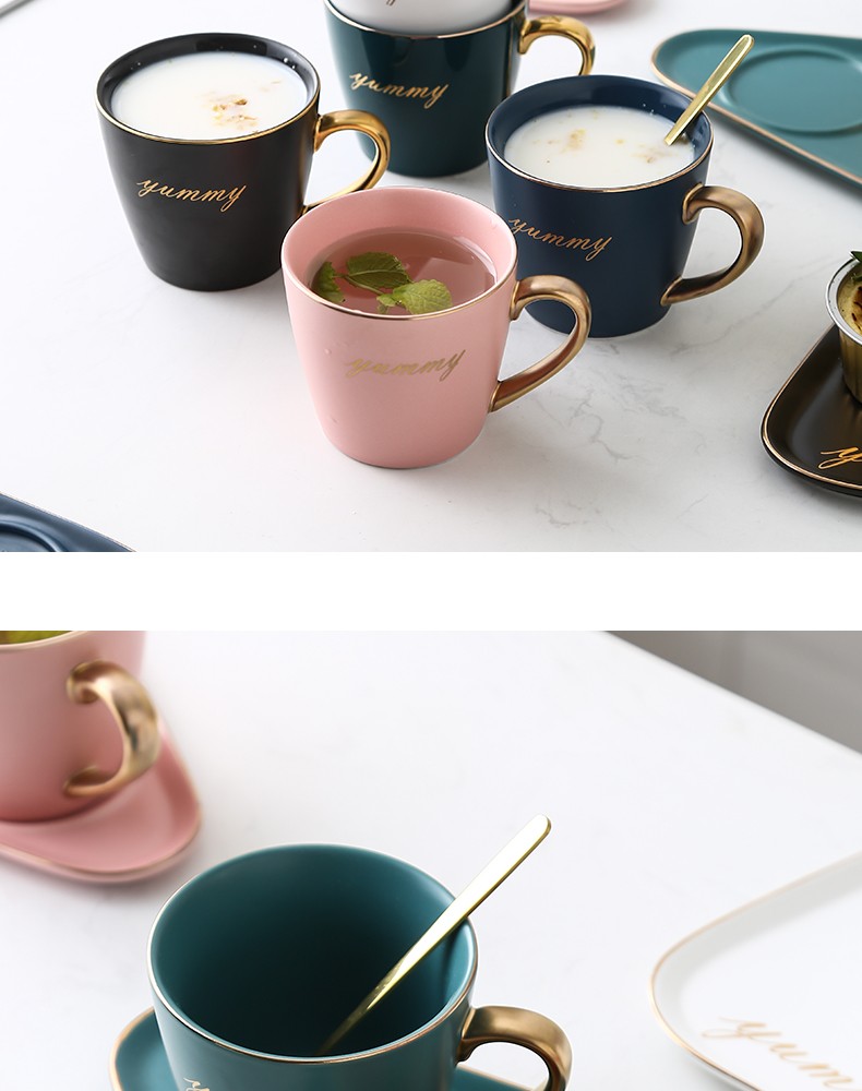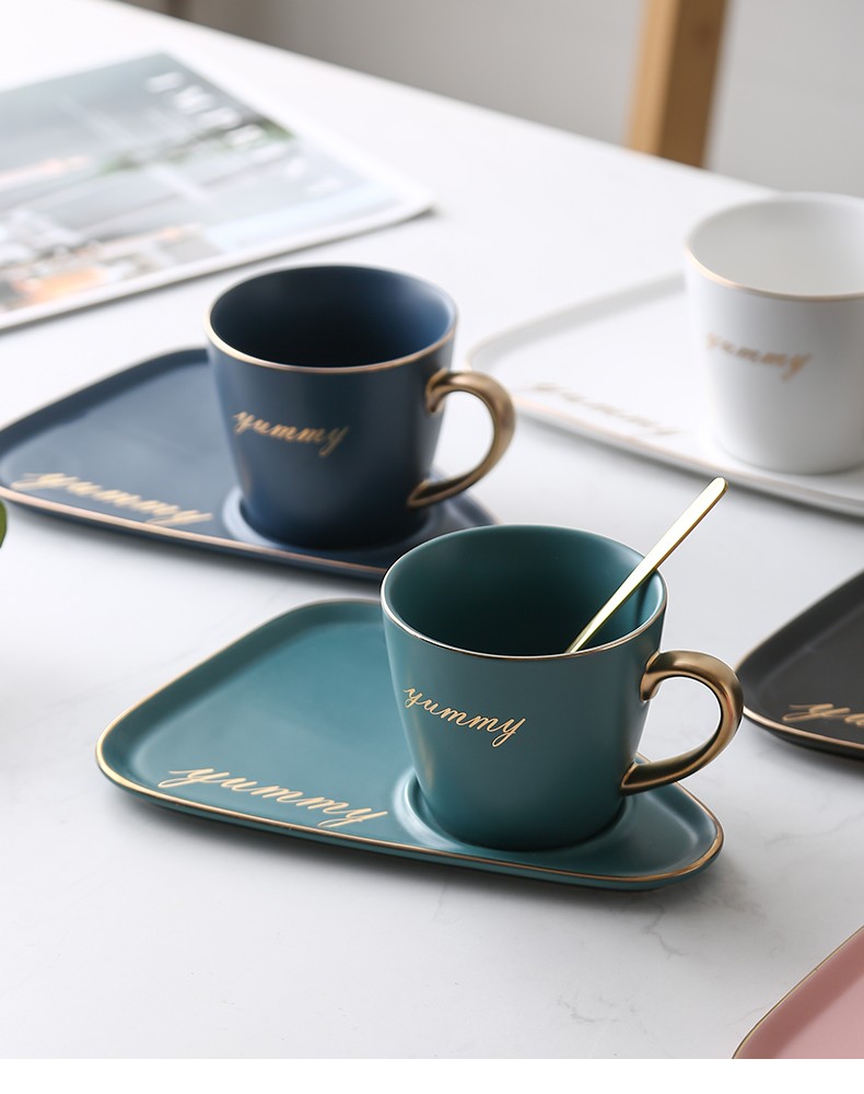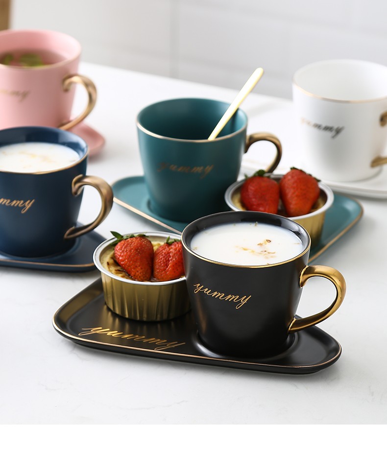 Juego de taza y platillo de café de cerámica de lujo europeo para oficina, tazas de té con leche, regalos para parejas de cumpleaños, taza de amigos con caja de regalo de cuchara