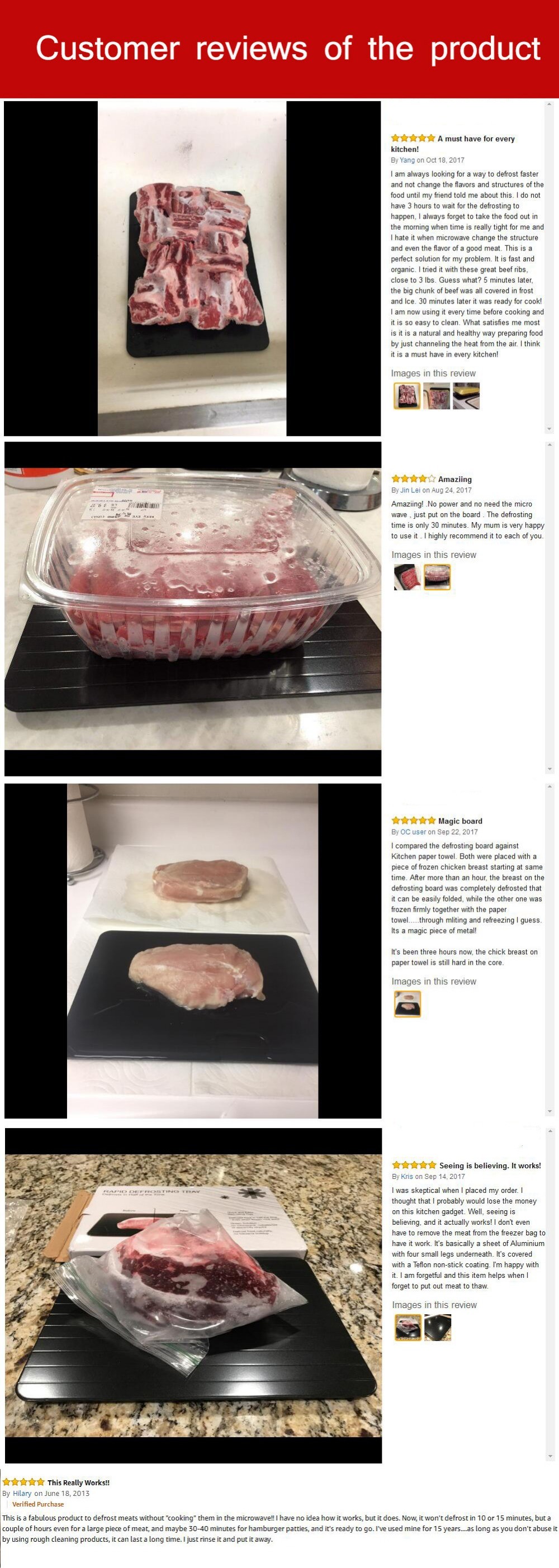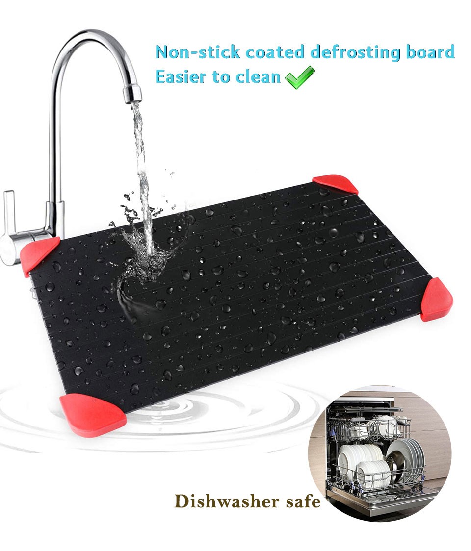 * El aluminio tiene conductividad térmica y velocidades de descongelación de alimentos, y el tamaño grande de la estera de descongelación para carne congelada es más rápido que el pequeño, lo que le ahorrará más tiempo mientras cocina.
