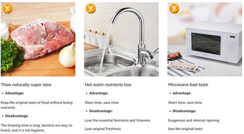 5. Use agua tibia para enjuagar rápidamente antes de descongelar, el tiempo de descongelación es más rápido.