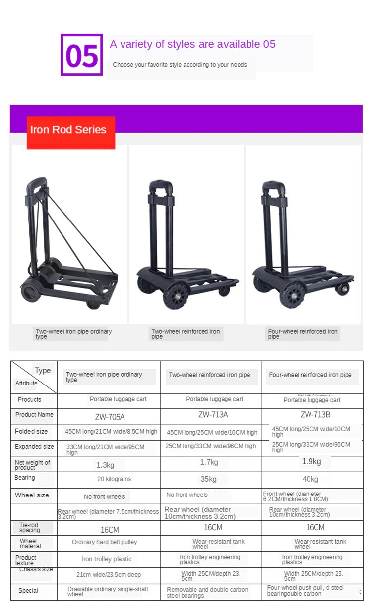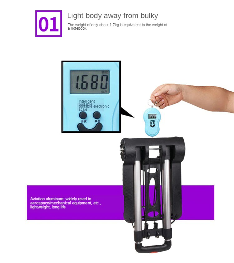 Carrito De Mano Plegable Para Equipaje, Con Capacidad De 100Kg/220 Libras, Portátil, Con Ruedas De Construcción Sólida