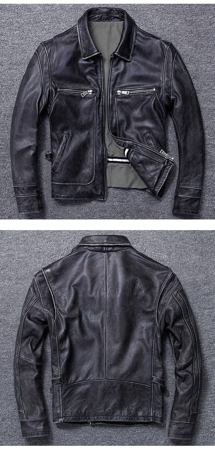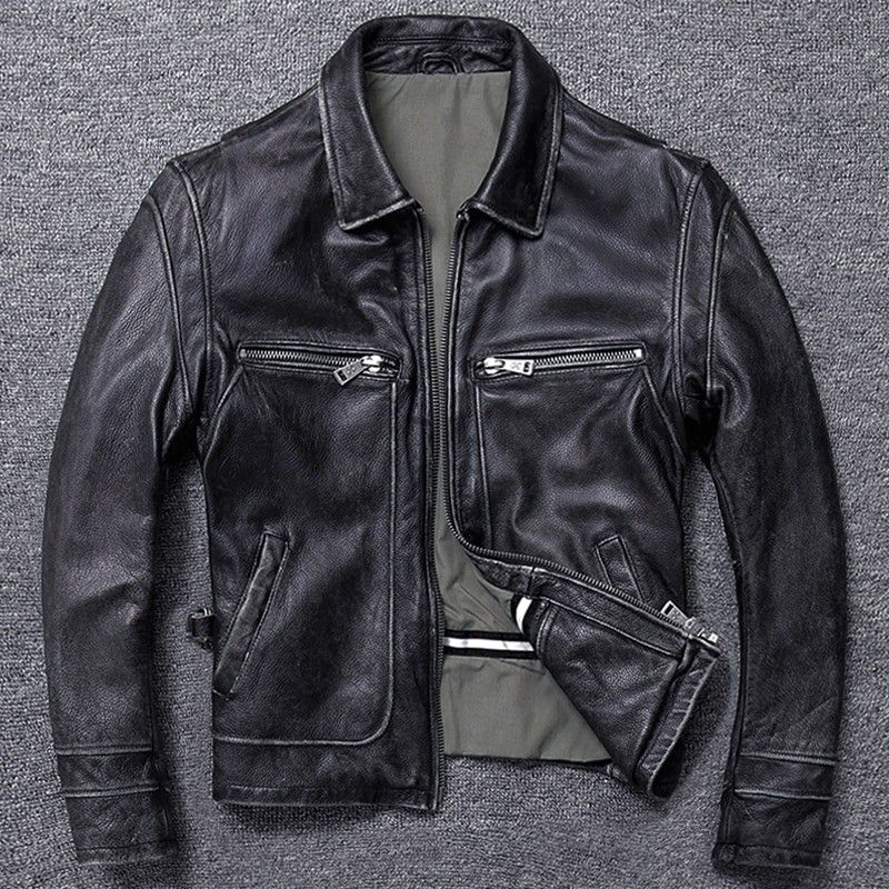 Abrigo De Piel De Vaca Para Hombre, Chaqueta Gruesa Cuero Genuino Calidad Natural, Ropa Cuero De Estilo Vintage Venta Gratis, Nuevo