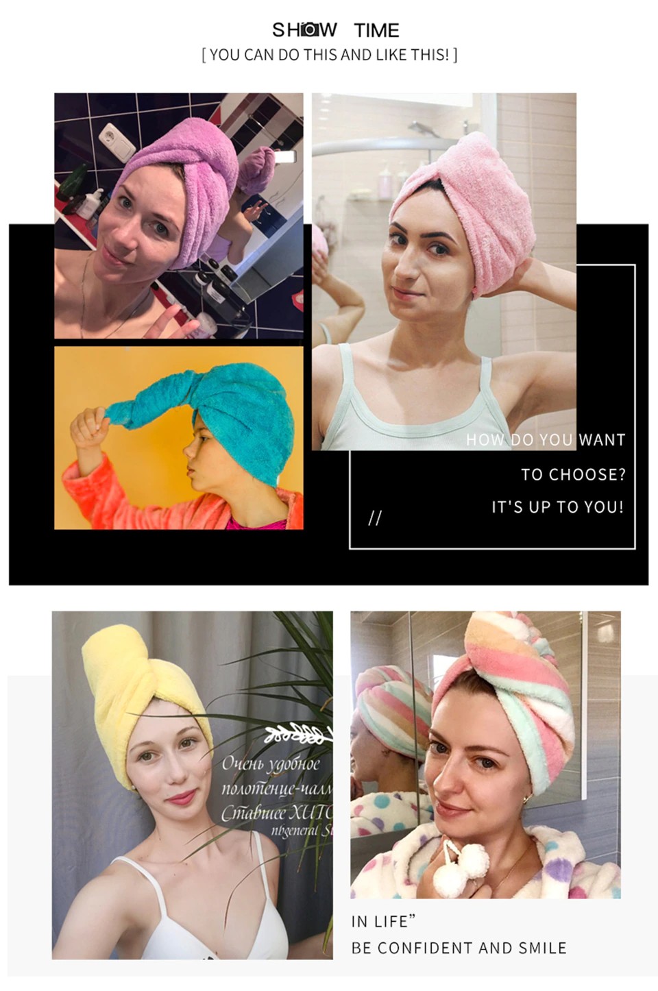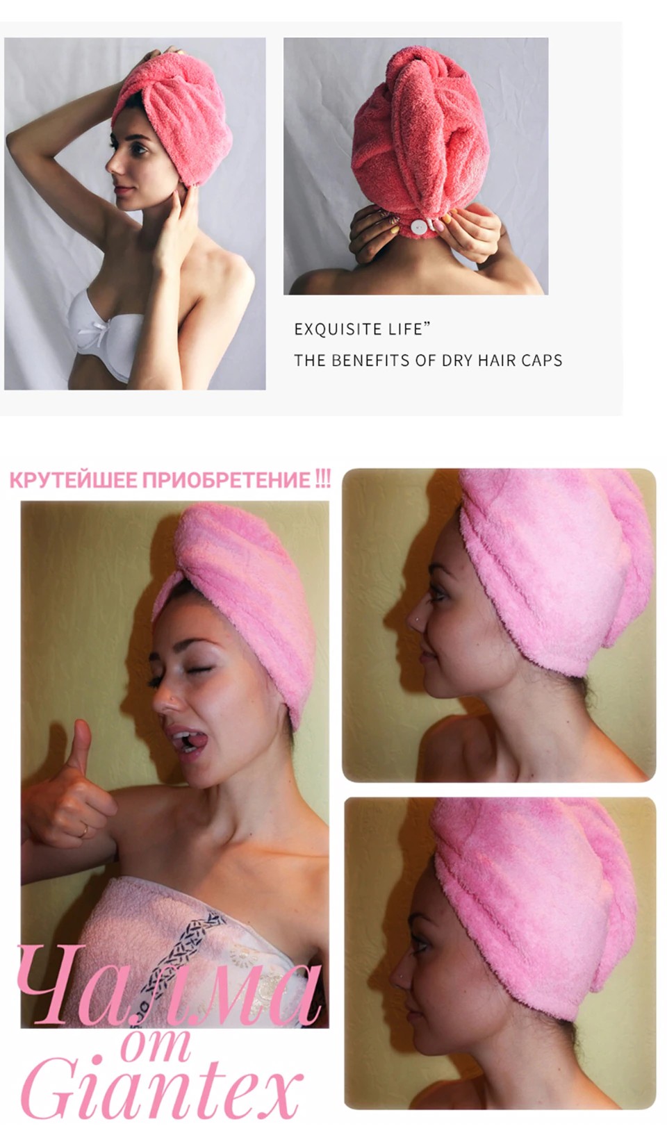 Nuestras toallas de pelo están hechas de tela de microfibra. Diseñado para secar correctamente el cabello, de mojado a húmedo más rápido que las toallas de algodón, mientras se seca uniformemente, con cuidado y recuperar la fuerza del cabello.
