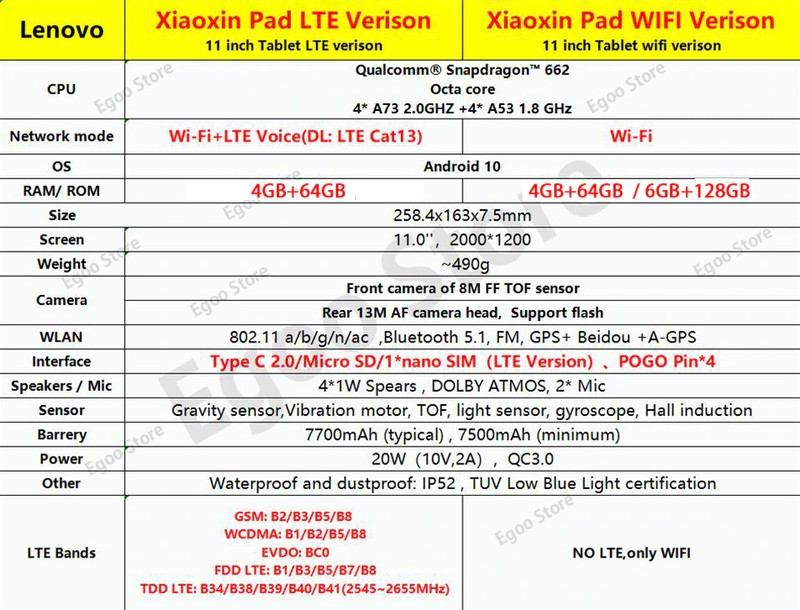 Snapdragon octa Core / 4GB o 6GB Ram / 64GB o 128GB Rom / 11 pulgadas/2K TDDI pantalla